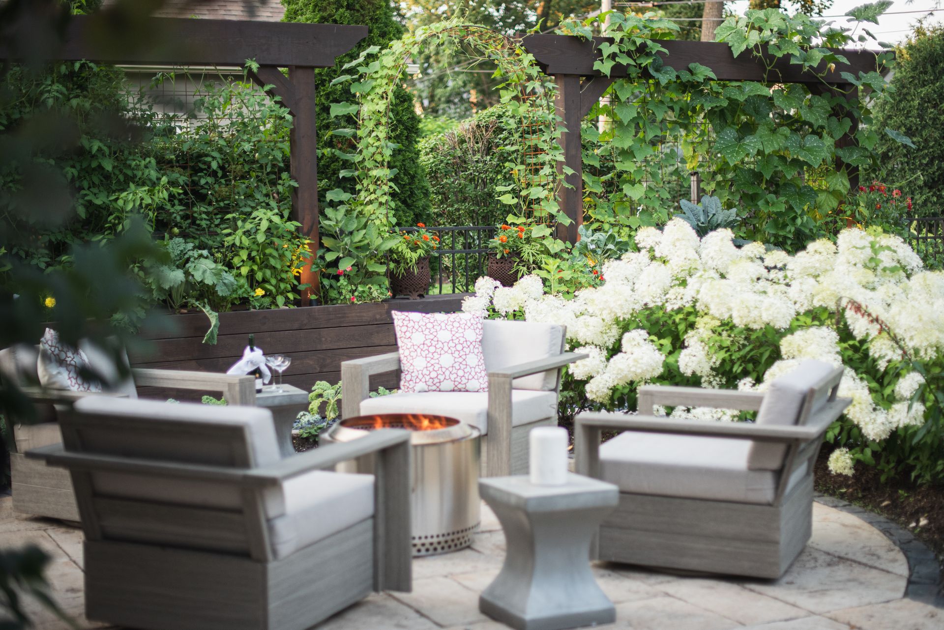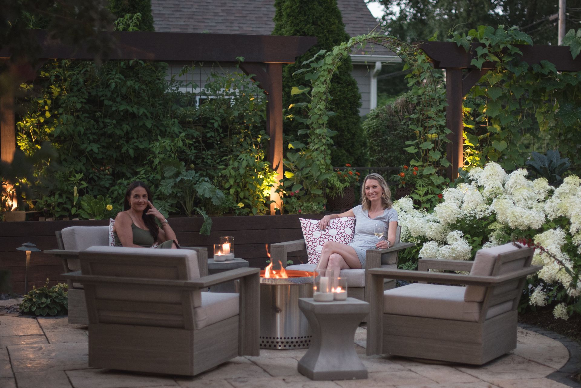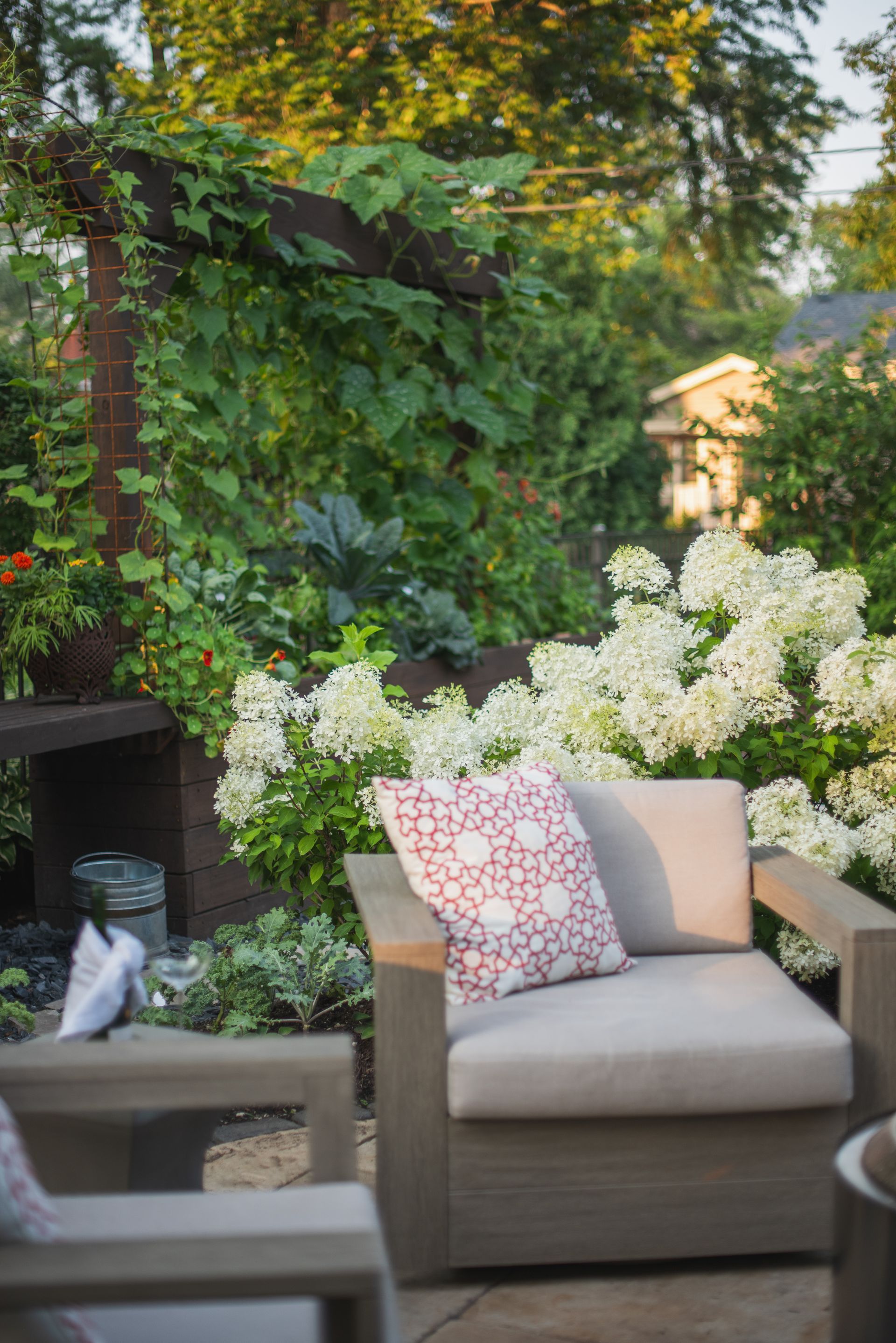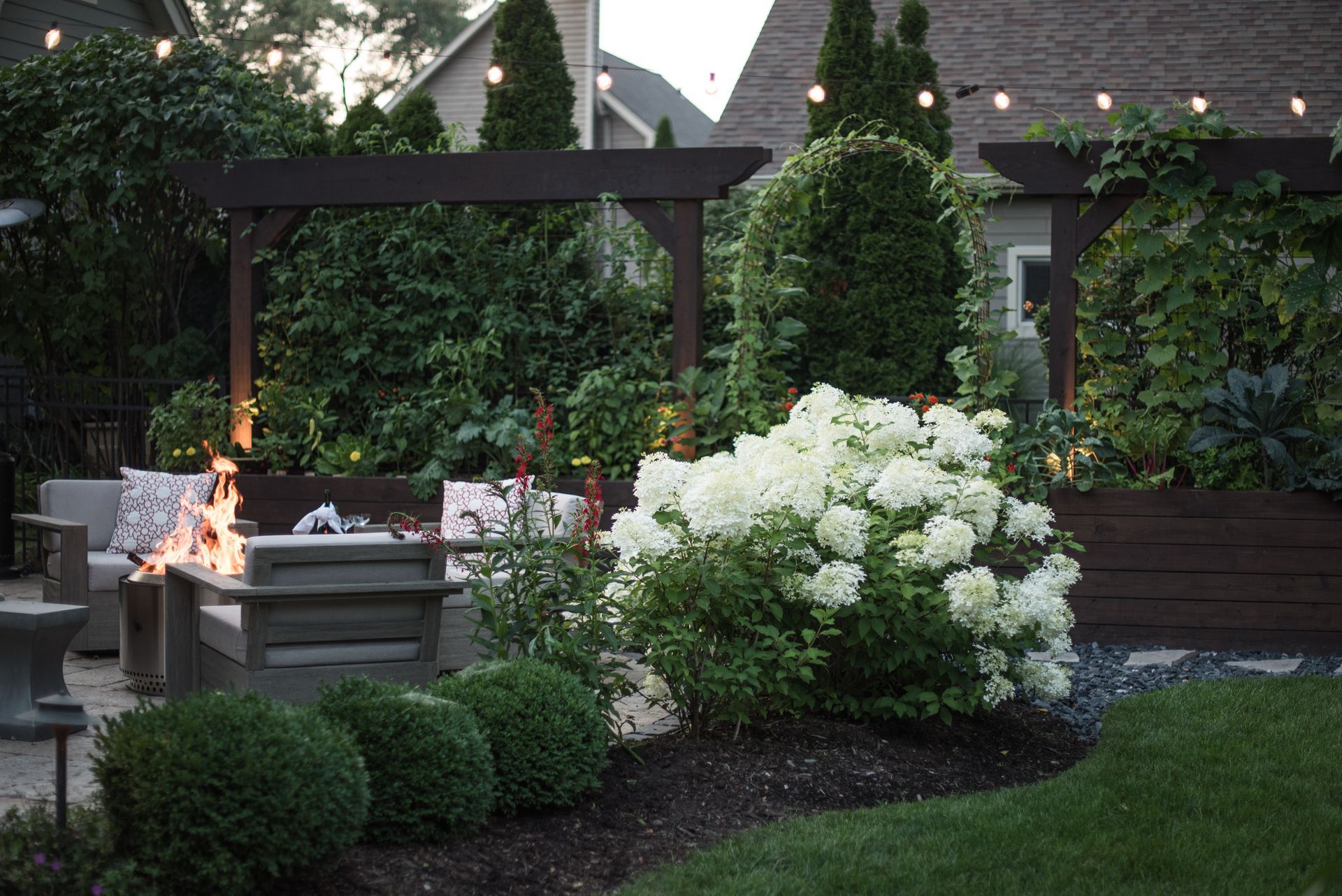 What began as an unused, drab corner of an otherwise beautiful yard has become a vibrant, abundant garden that now provides a lush green backdrop to her firepit area.