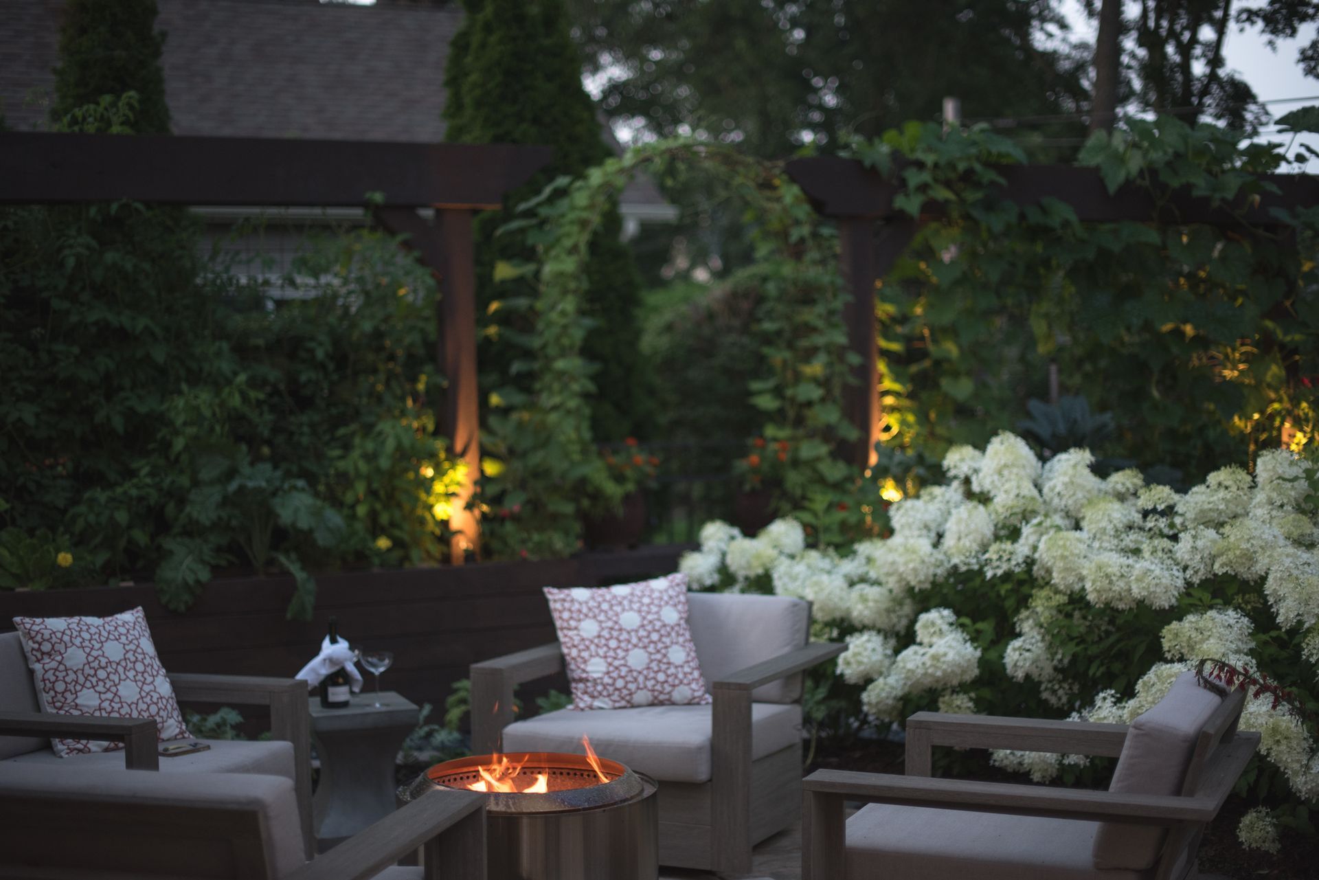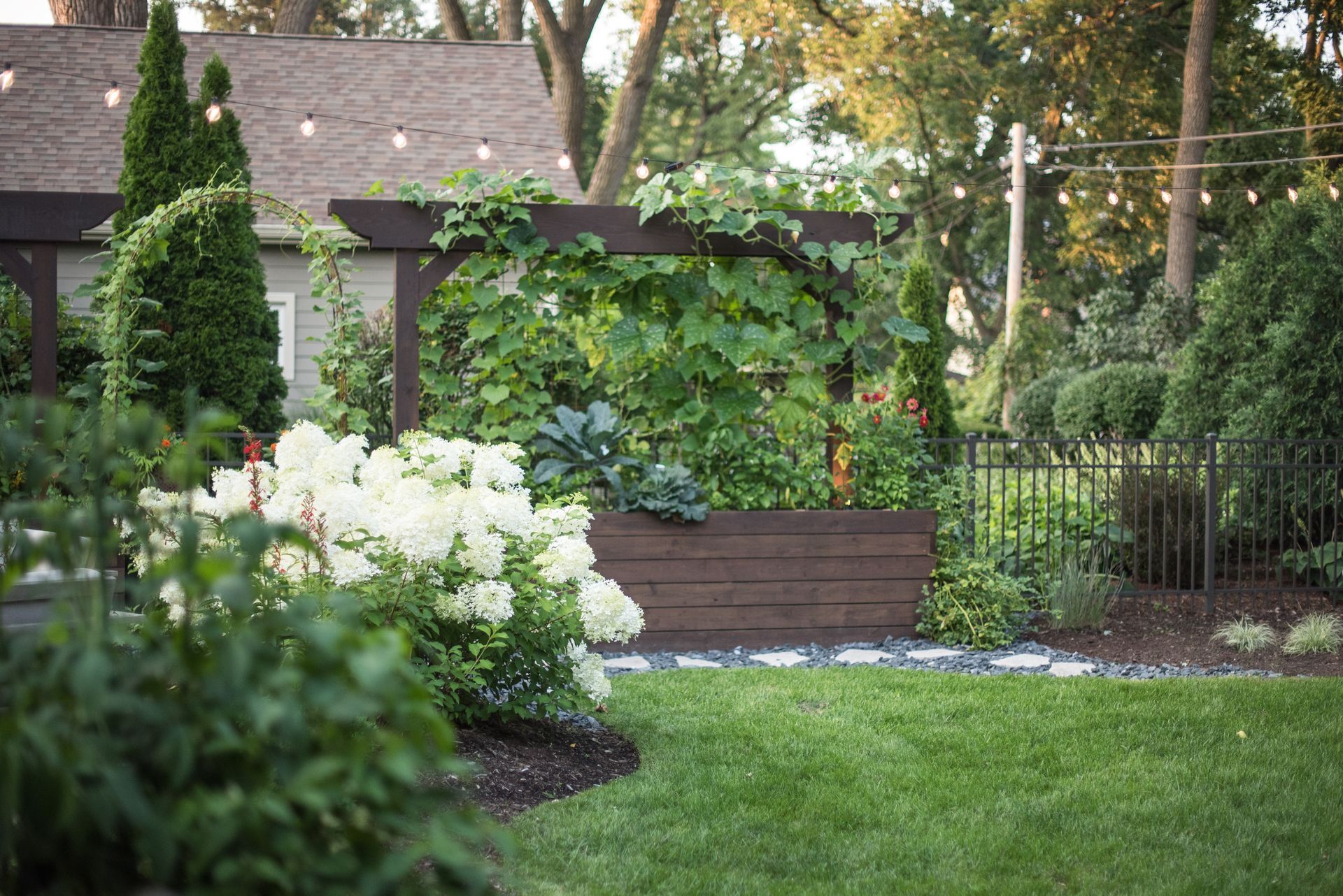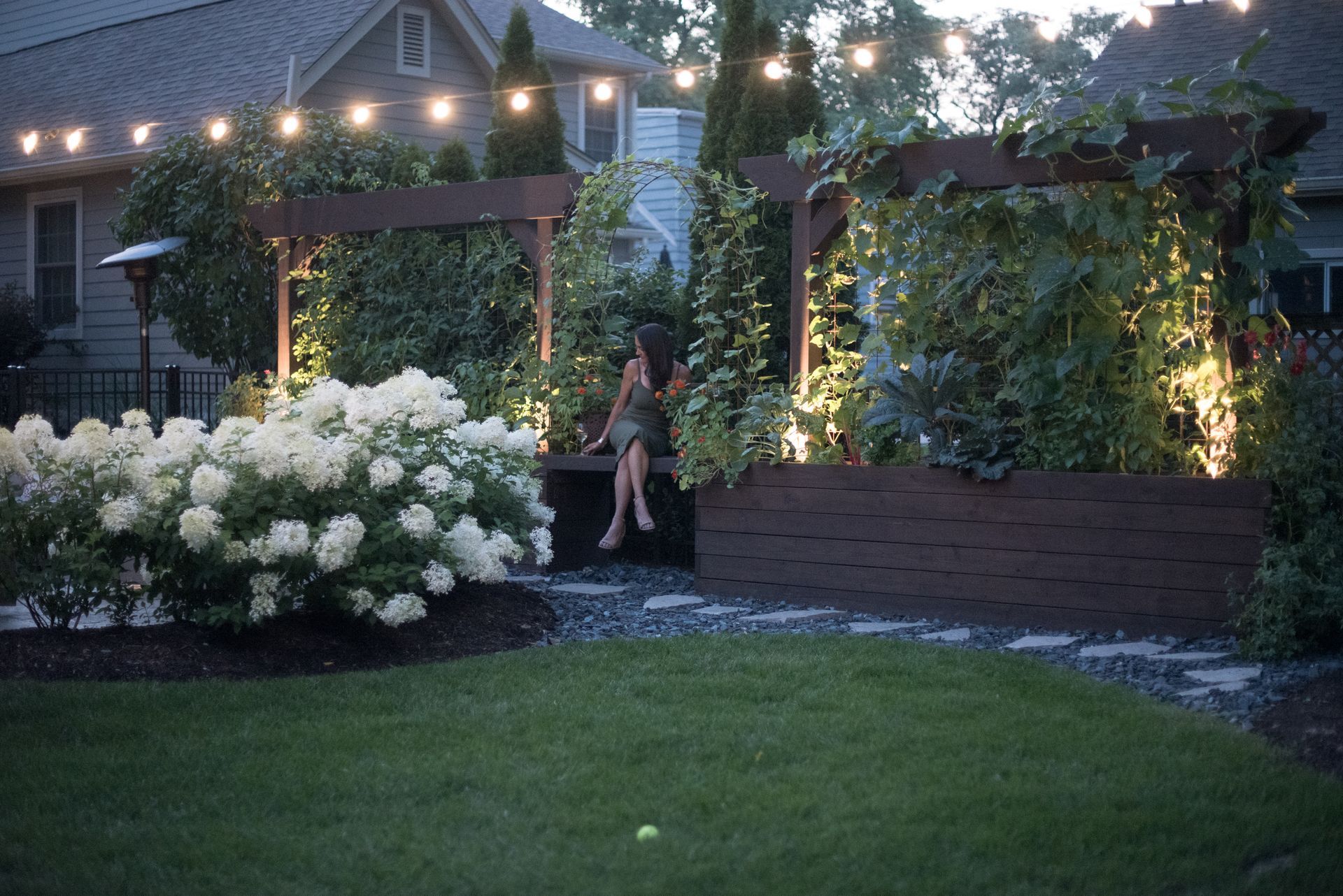 What began as an unused, drab corner of an otherwise beautiful yard has become a vibrant, abundant garden that now provides a lush green backdrop to her firepit area.