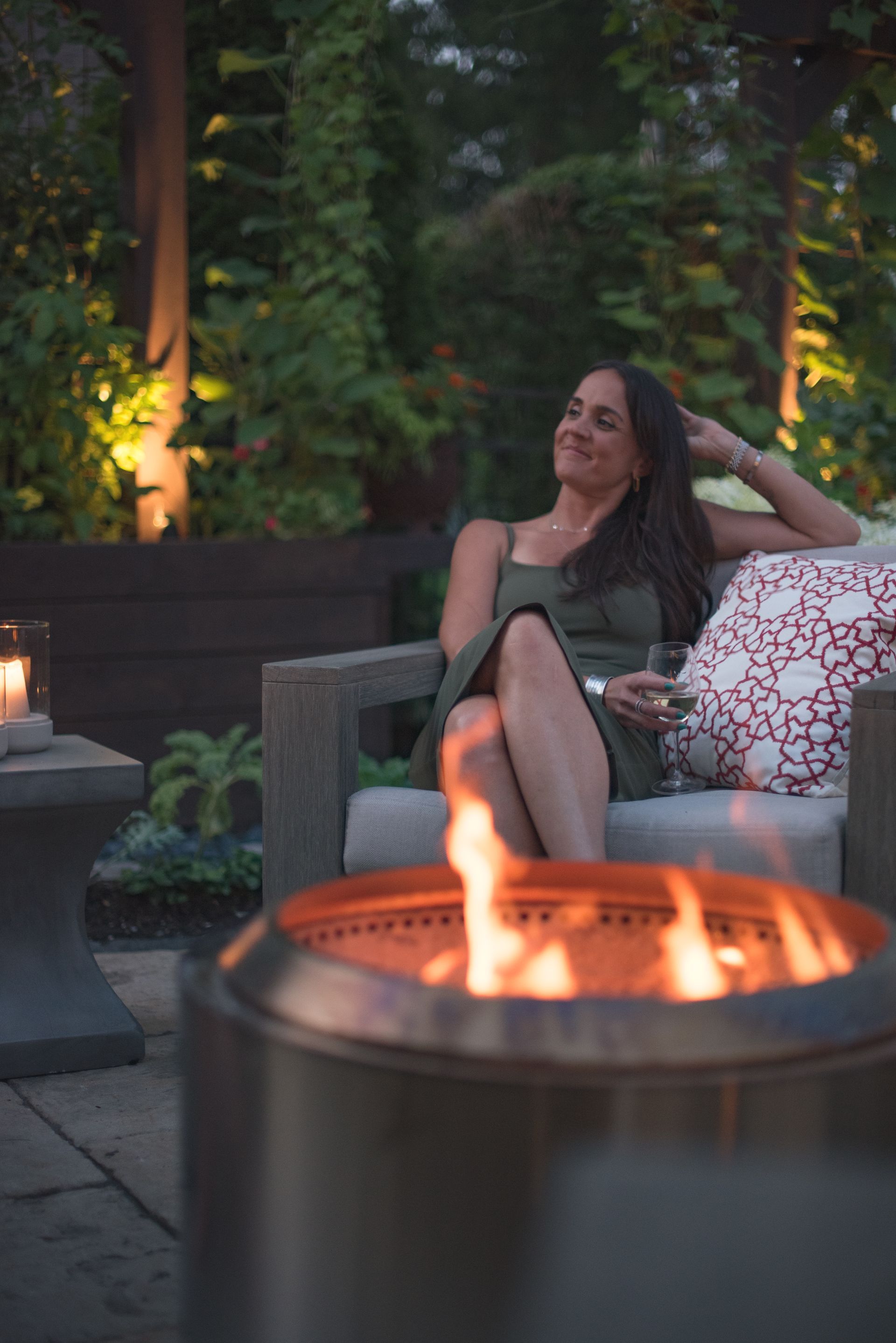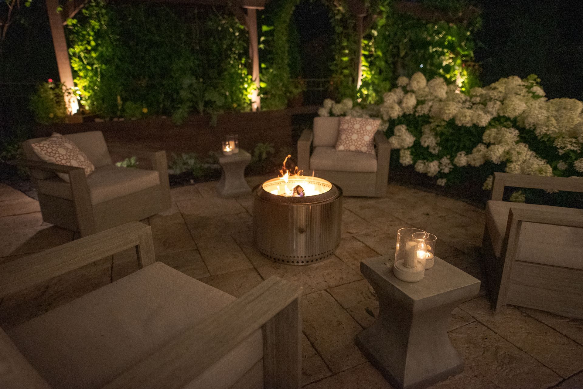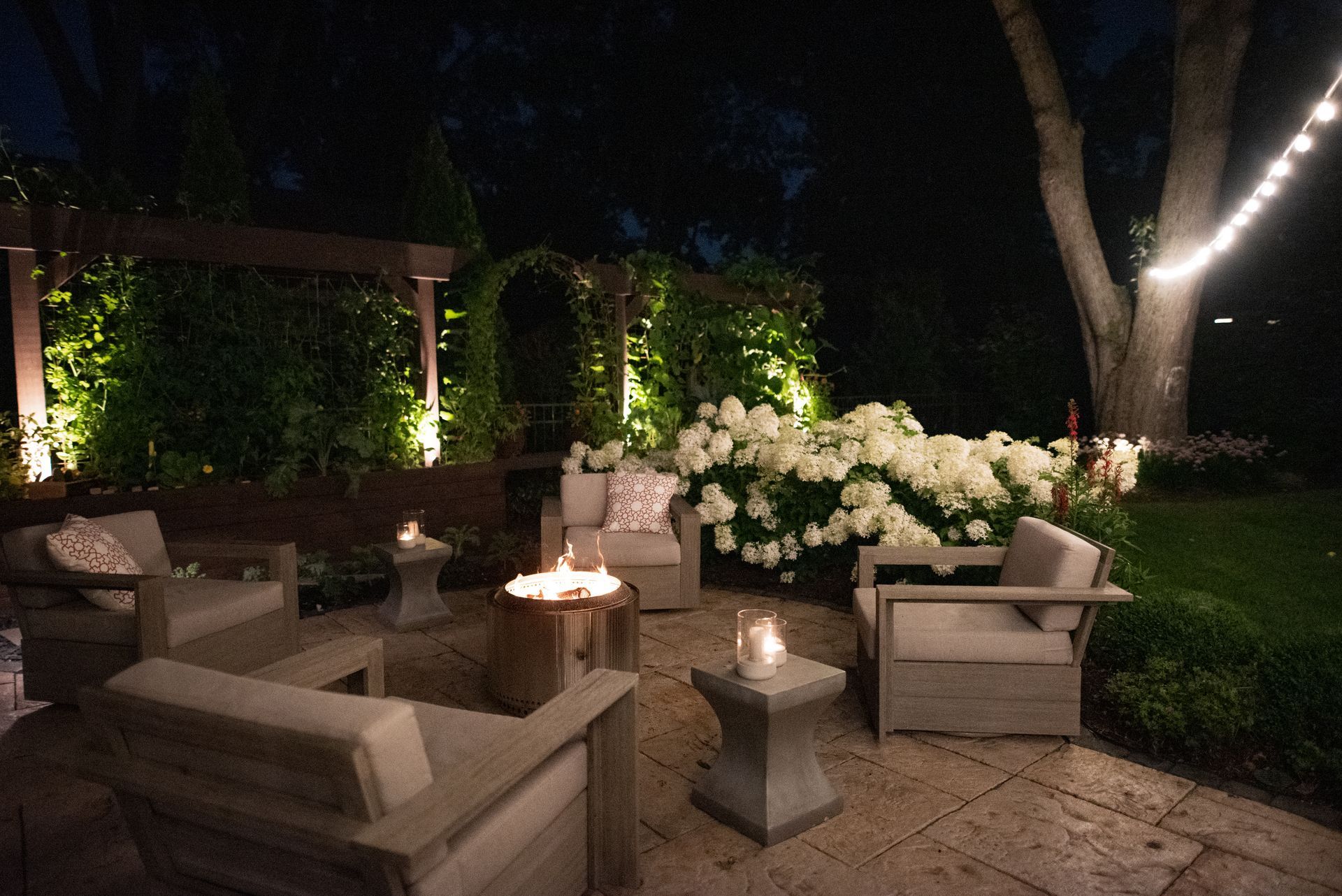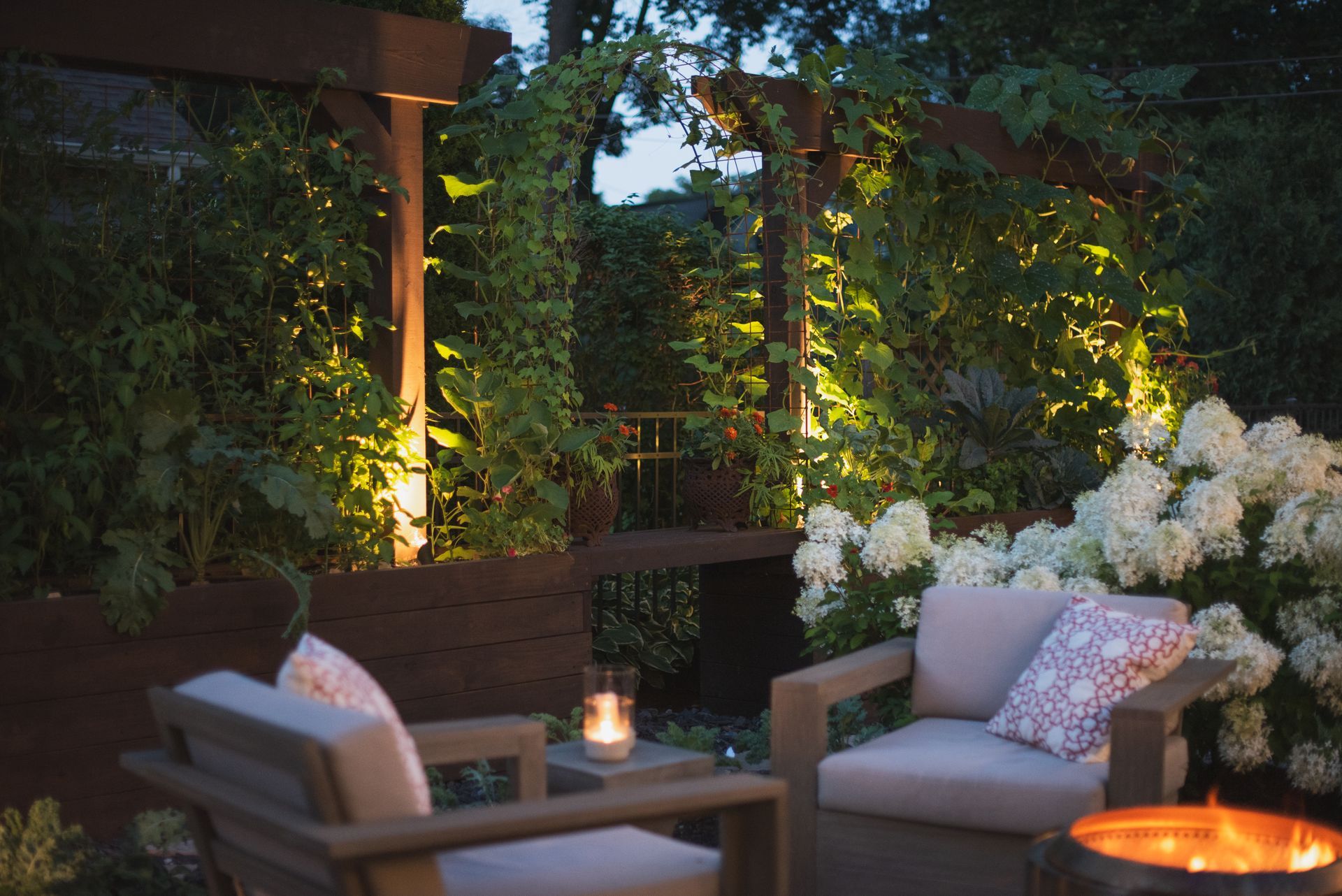 What began as an unused, drab corner of an otherwise beautiful yard has become a vibrant, abundant garden that now provides a lush green backdrop to her firepit area.