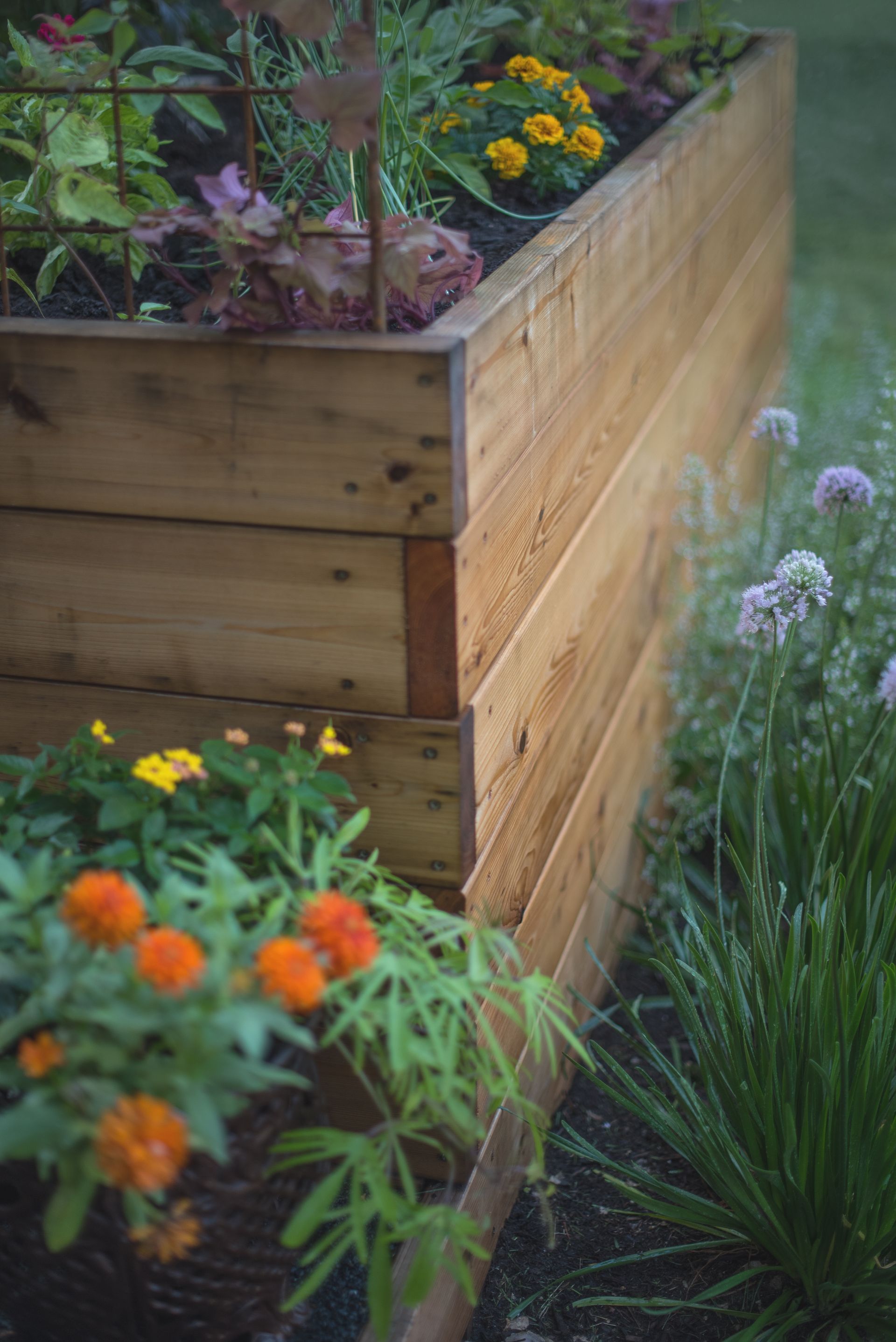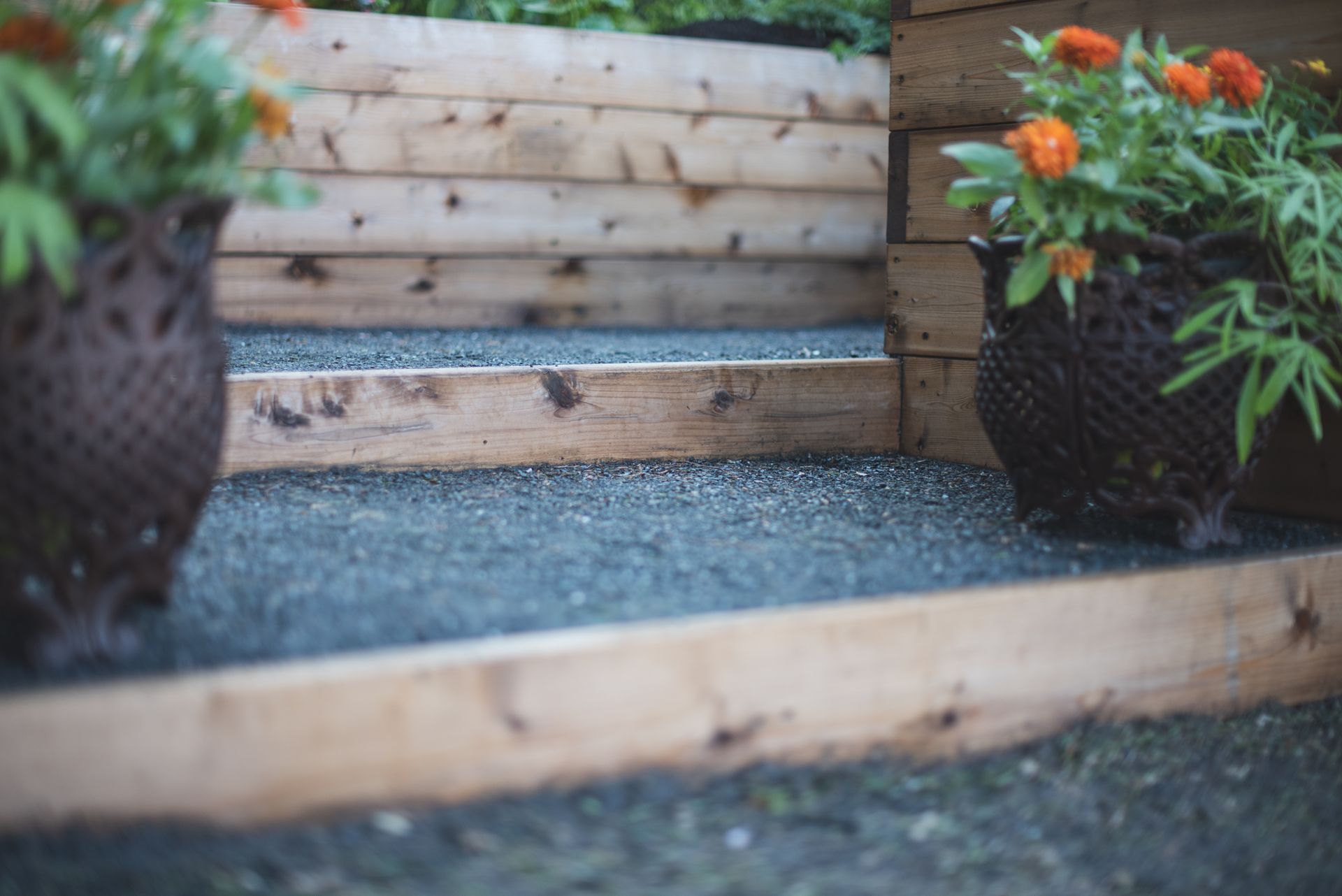 This project began with an undersized, unsightly shed that offered little value to the landscape. We replaced it with a beautifully crafted raised-bed garden, carefully leveled to sit gracefully on the natural slope.