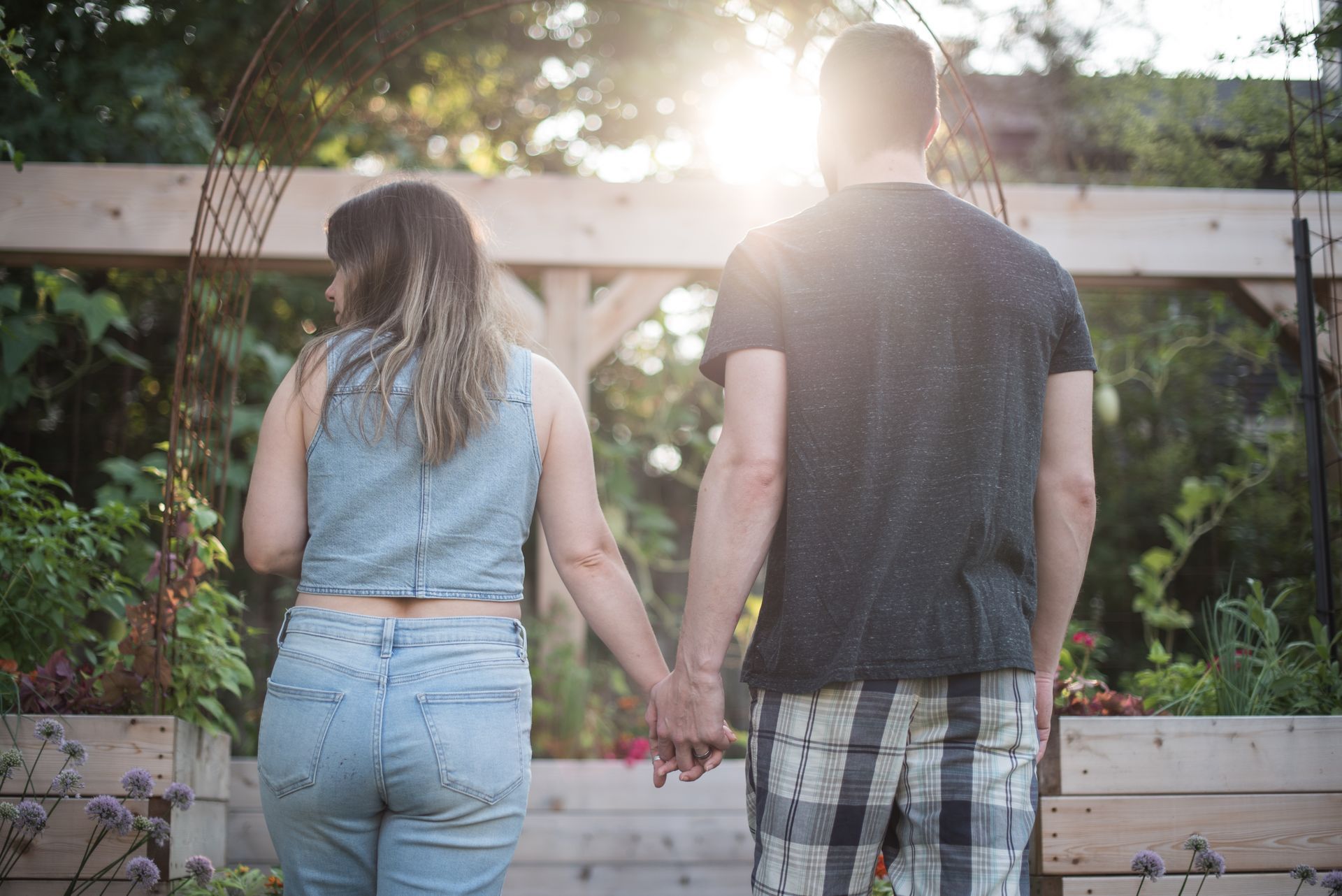 - wooden steps under rustic arbor
