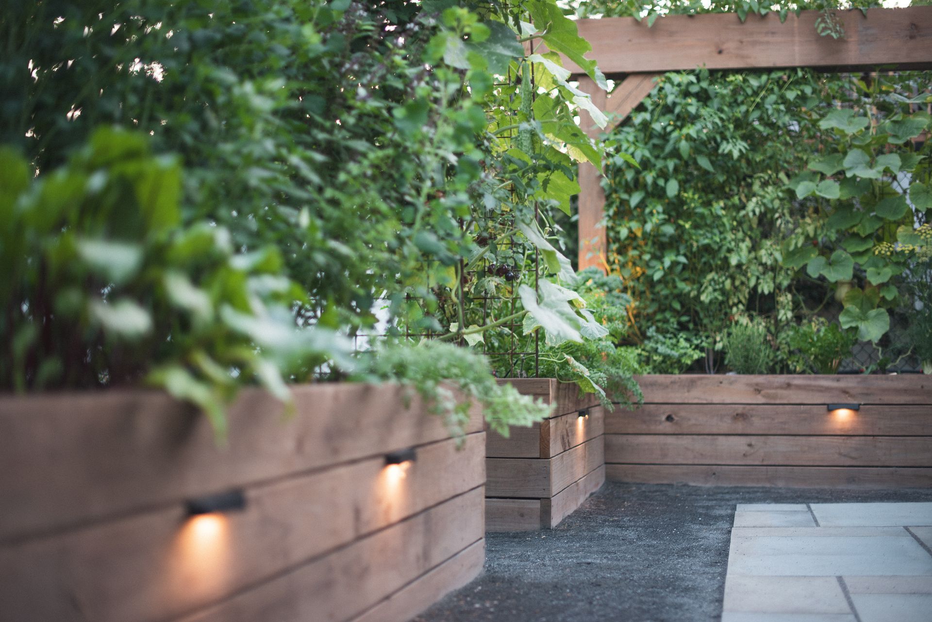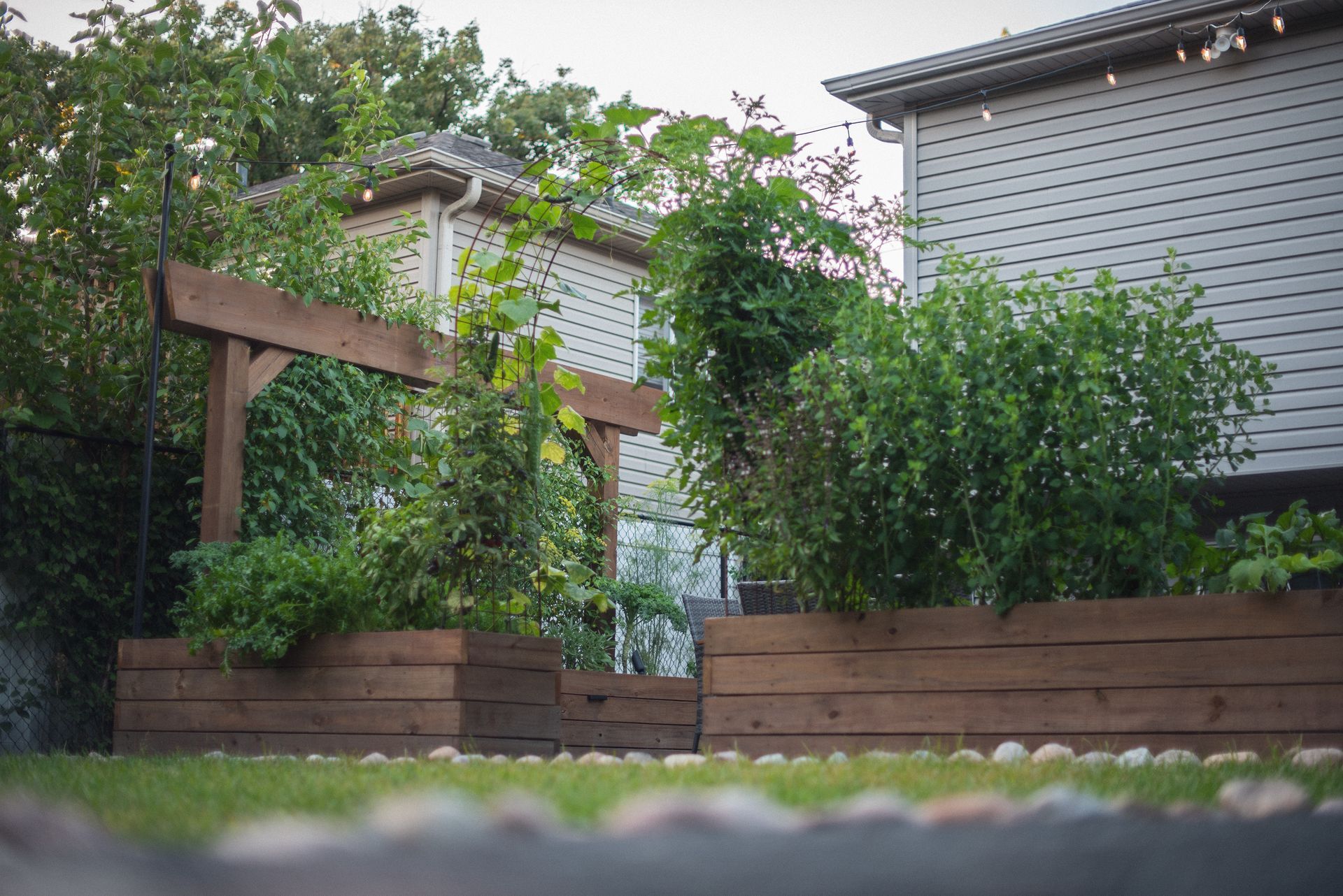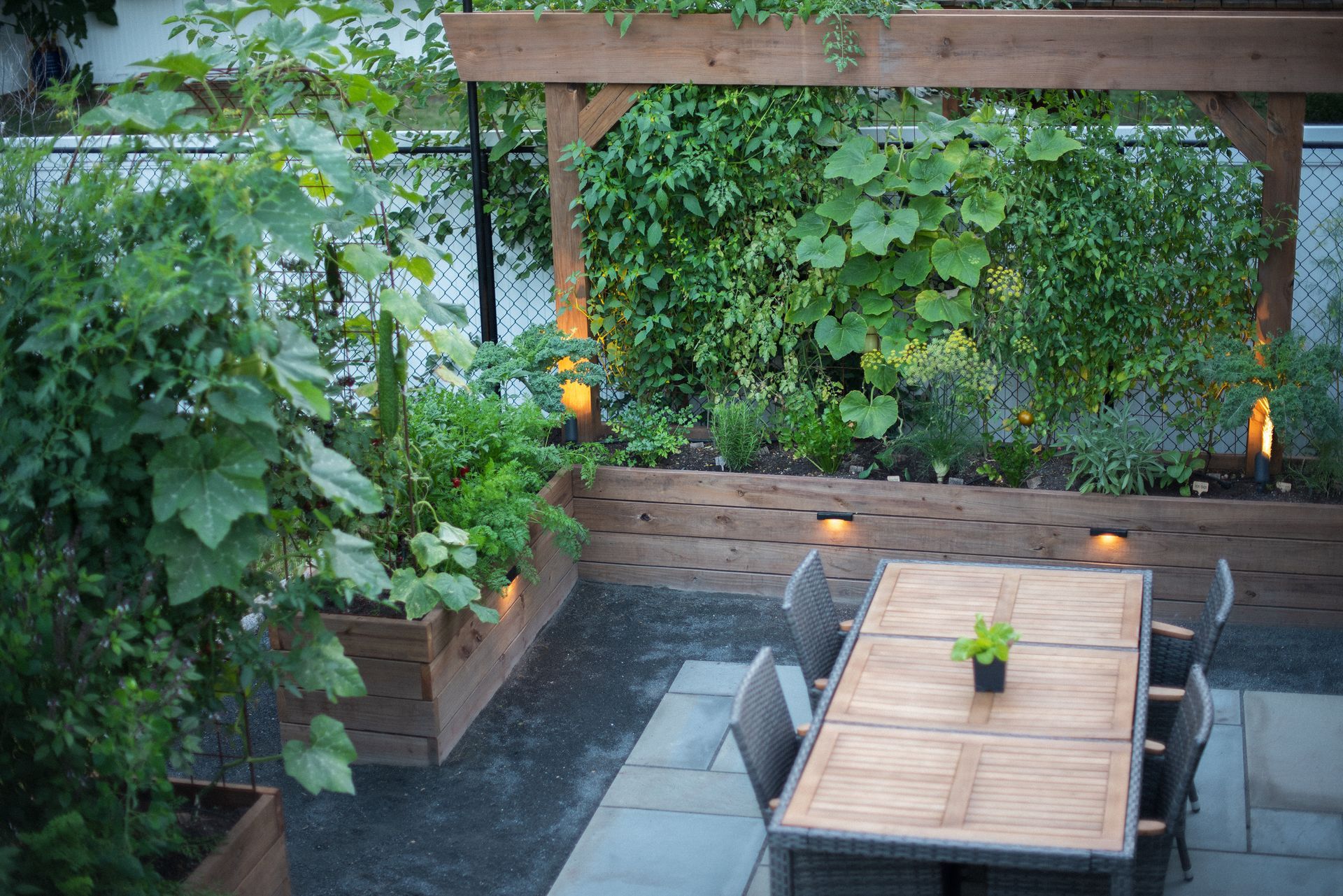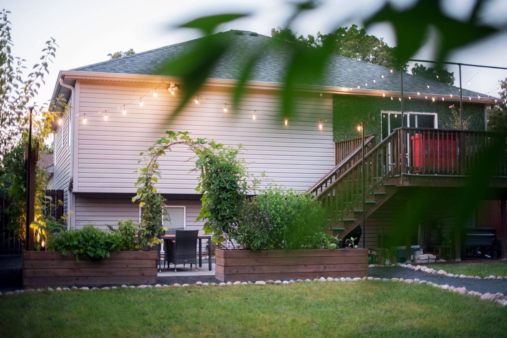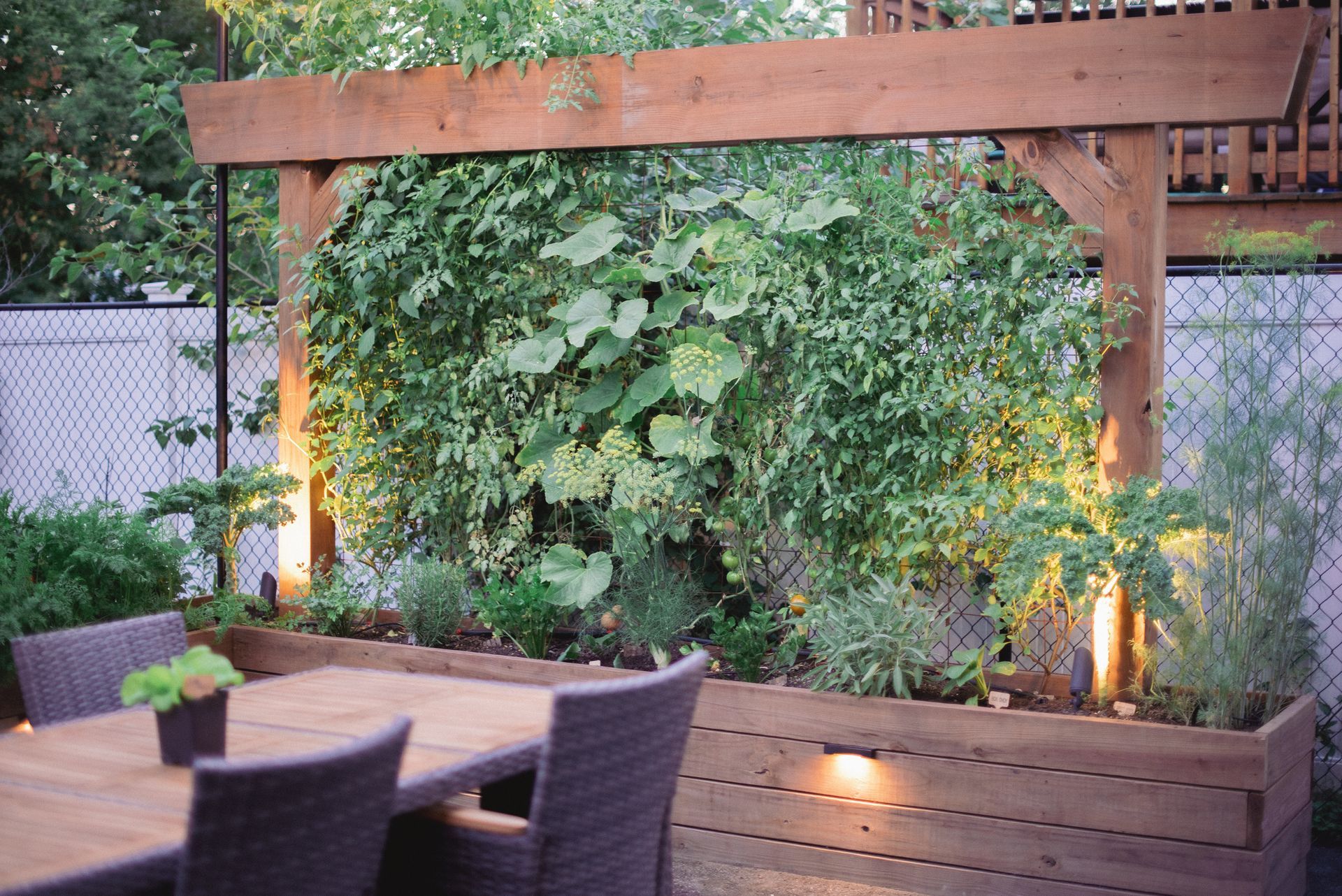To extend enjoyment well into the evening, we integrated lighting both within the garden boxes and overhead, giving the entire space a warm, inviting glow. What was once an underutilized backyard is now a truly functional outdoor living room.