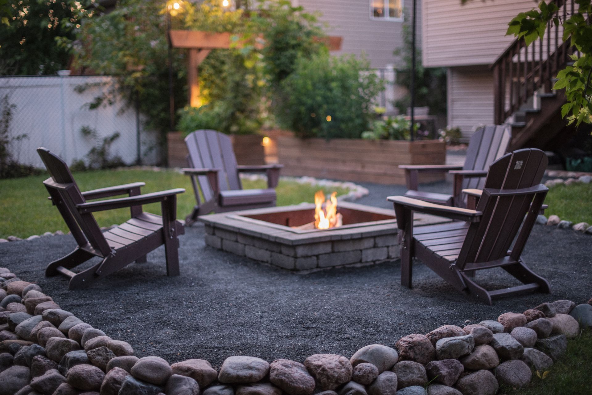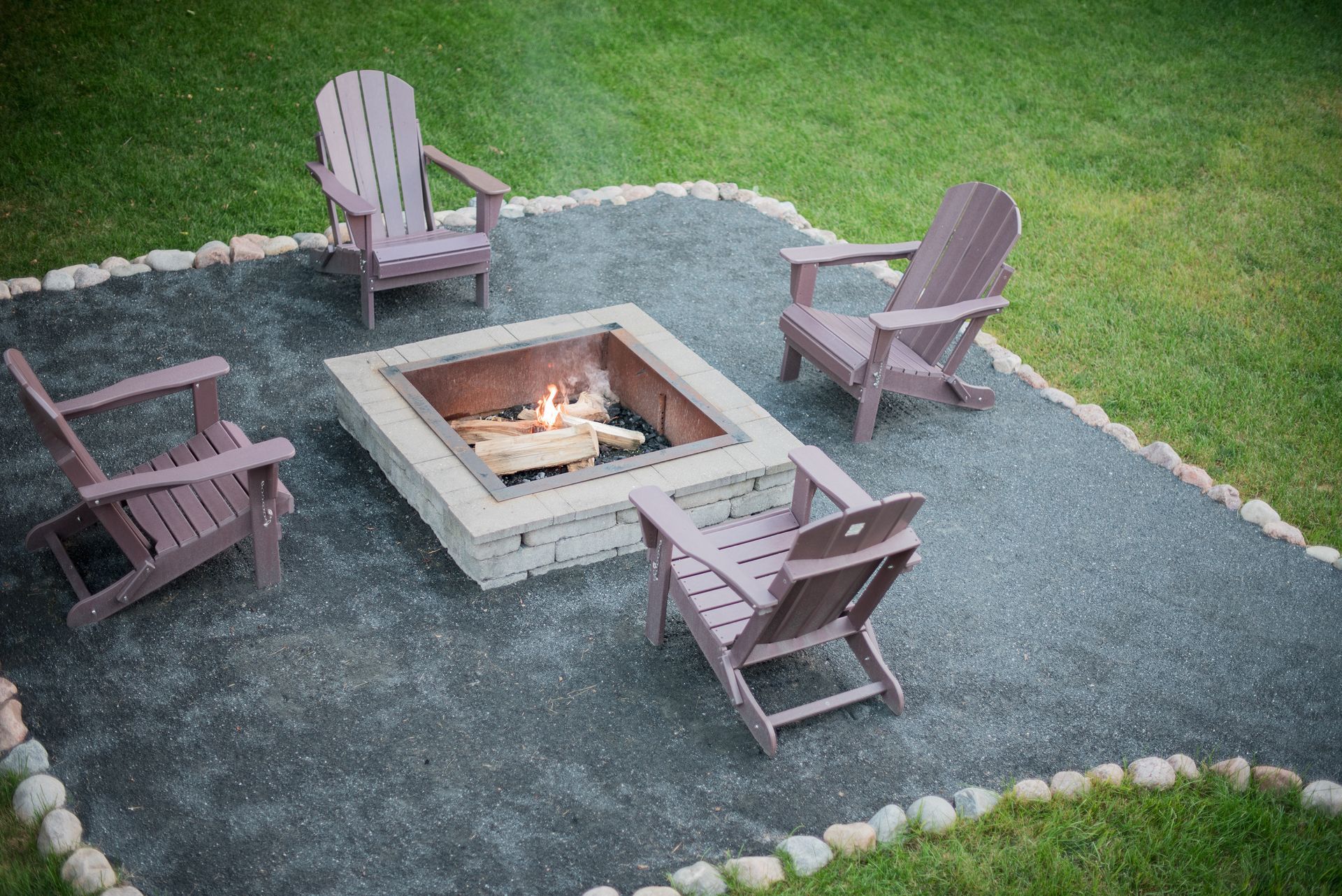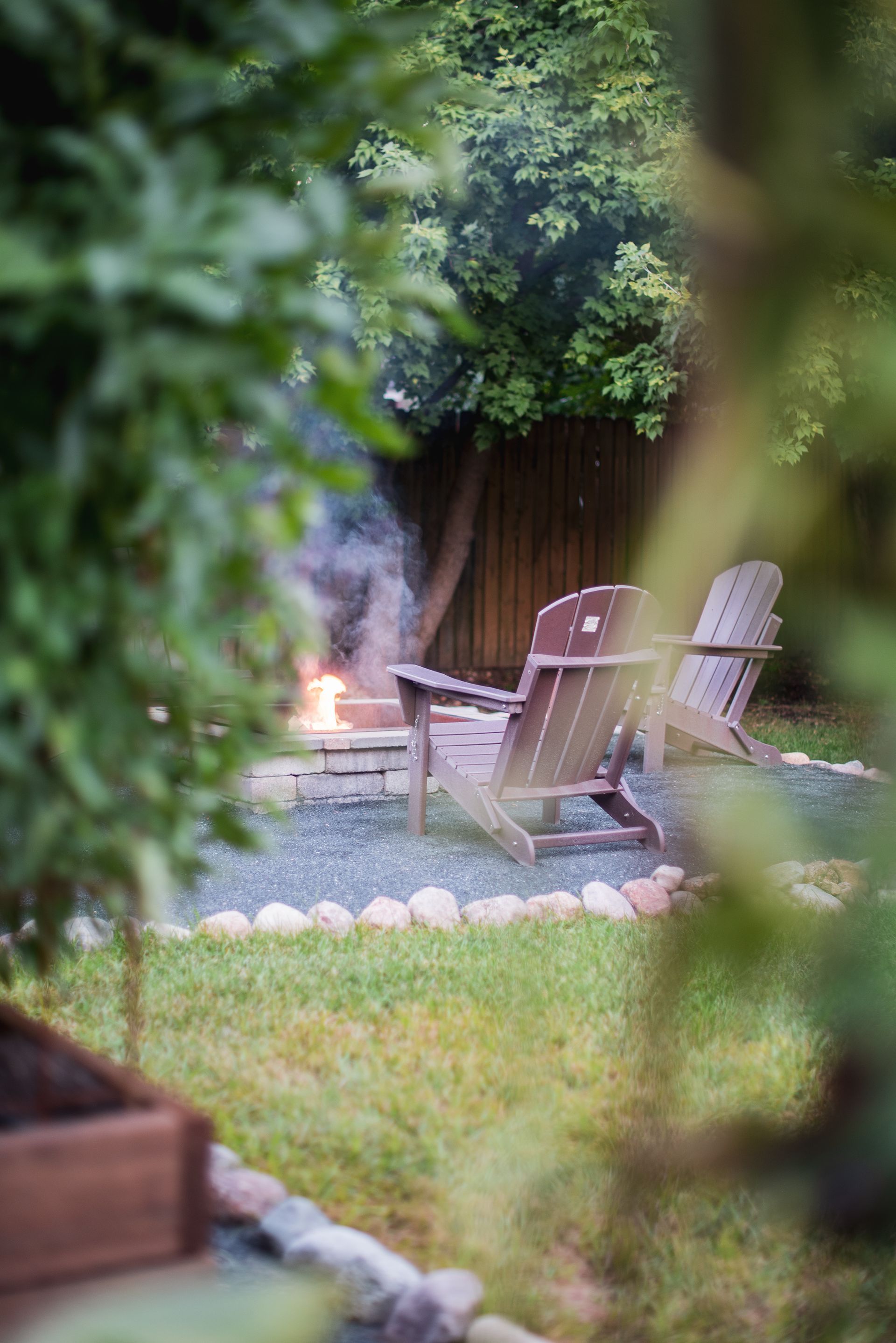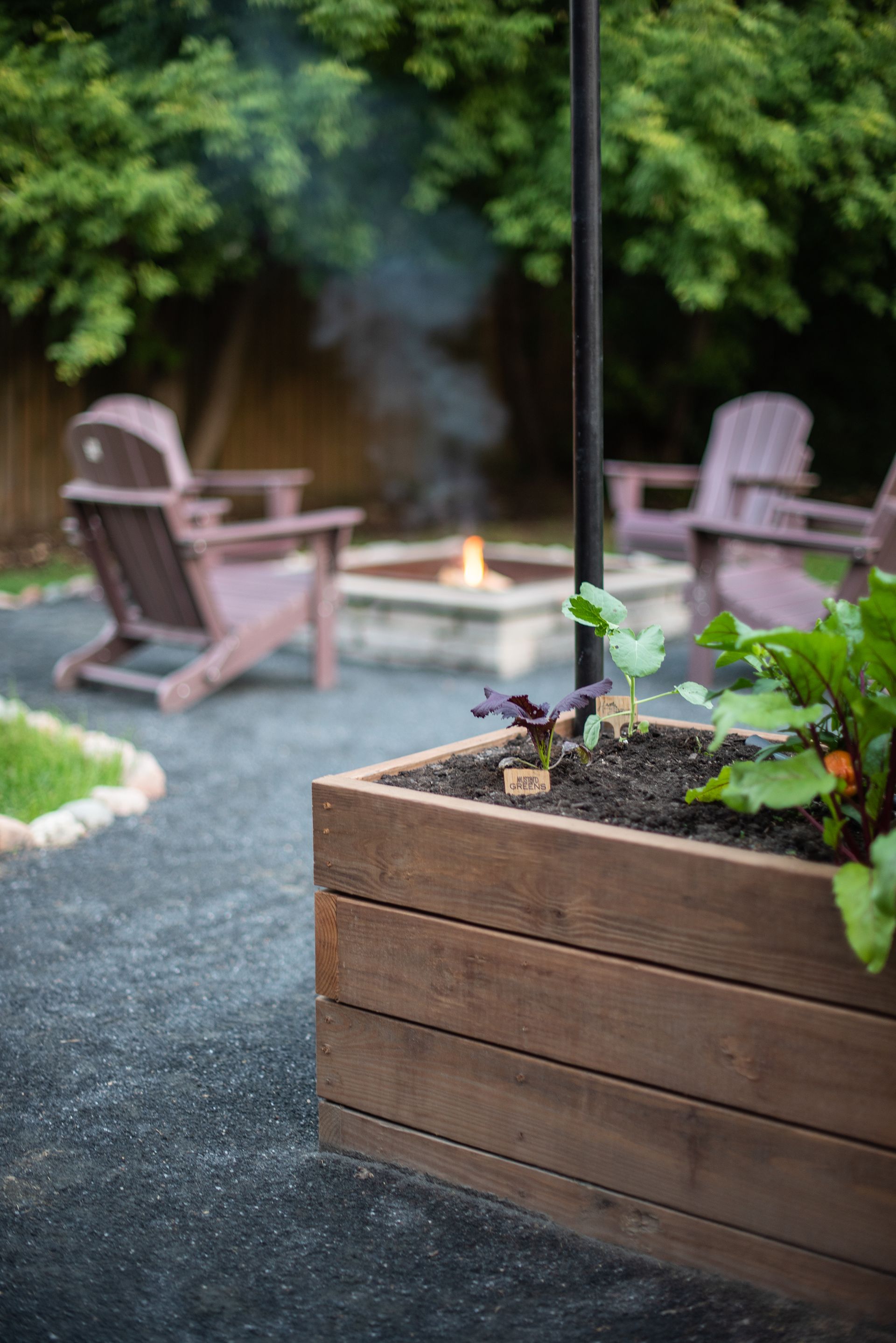 A new bluestone patio now anchors the area, framed by custom garden boxes that add texture, beauty, and seasonal flavor just steps from the table. The existing firepit—once set directly in the lawn—has been reimagined within a thoughtfully crafted retaining wall, creating a comfortable, defined space for conversation and connection.