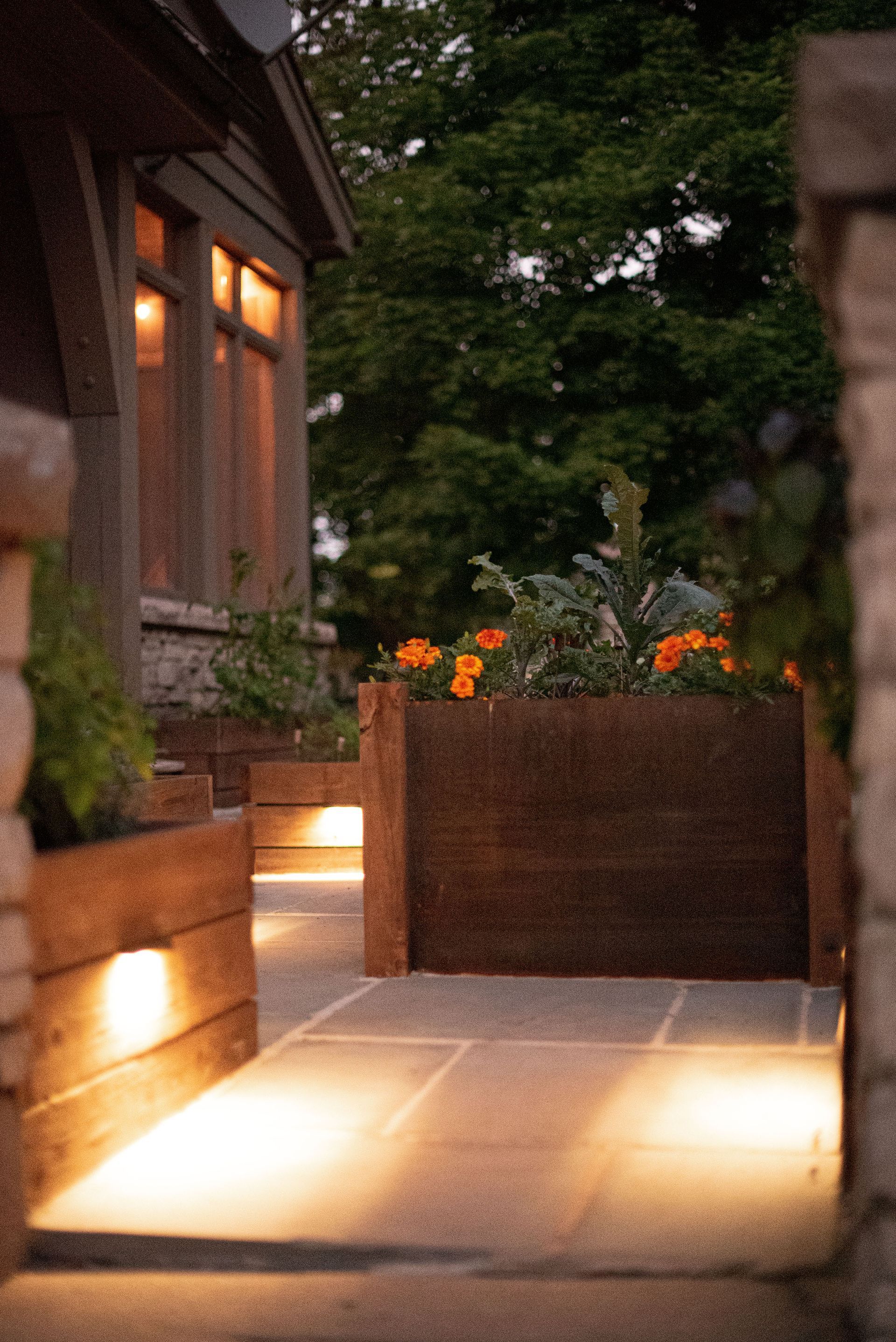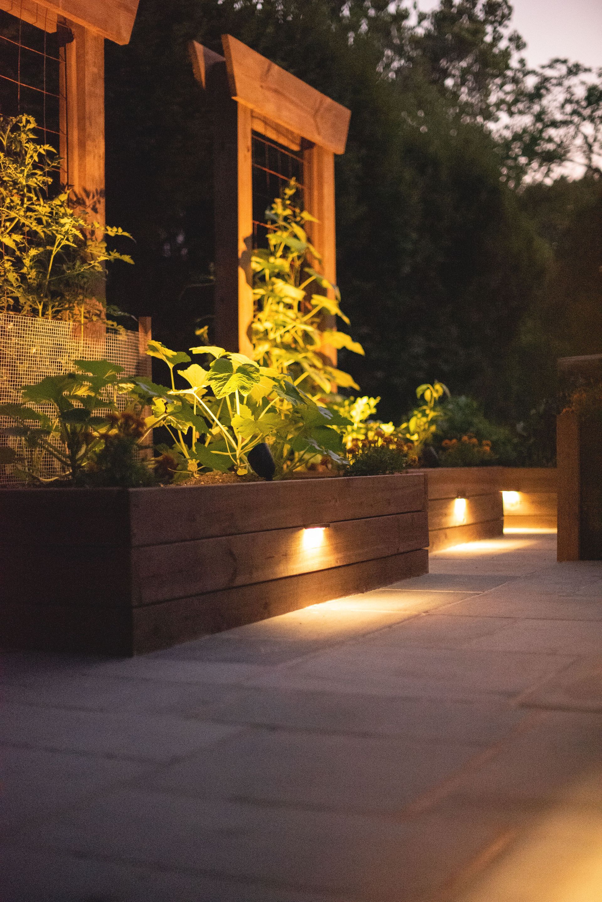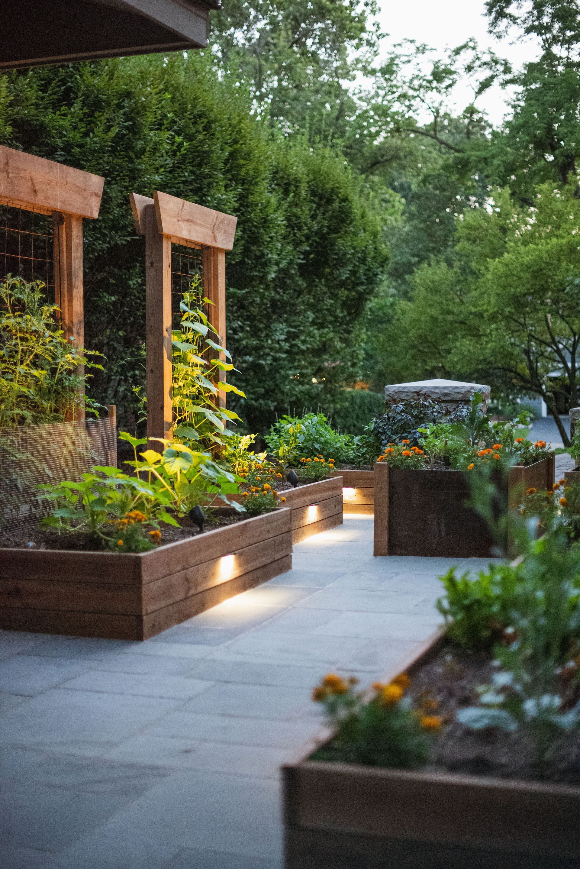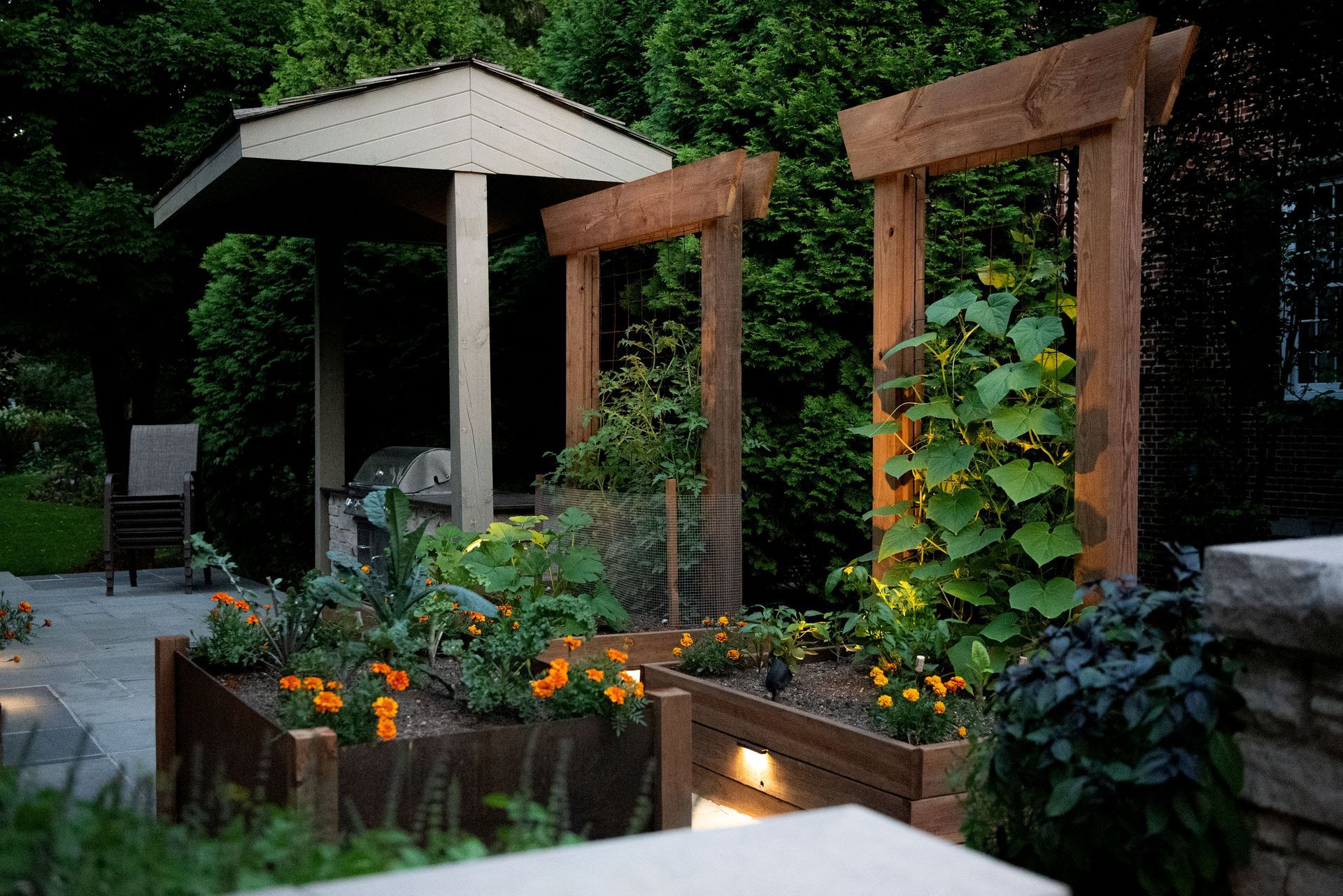 Welcome to the ultimate kitchen garden! A large sunny area right off the house had untapped potential and was prime real estate for a showpiece walkthrough garden equipped with slow-drip irrigation, pathway lighting and trellis spotlights. Creating this space was a nostalgic project for Maria's husband as it connected him back to his roots and resurfaced fond memories of growing up with a large garden eating fresh food straight from the vine.