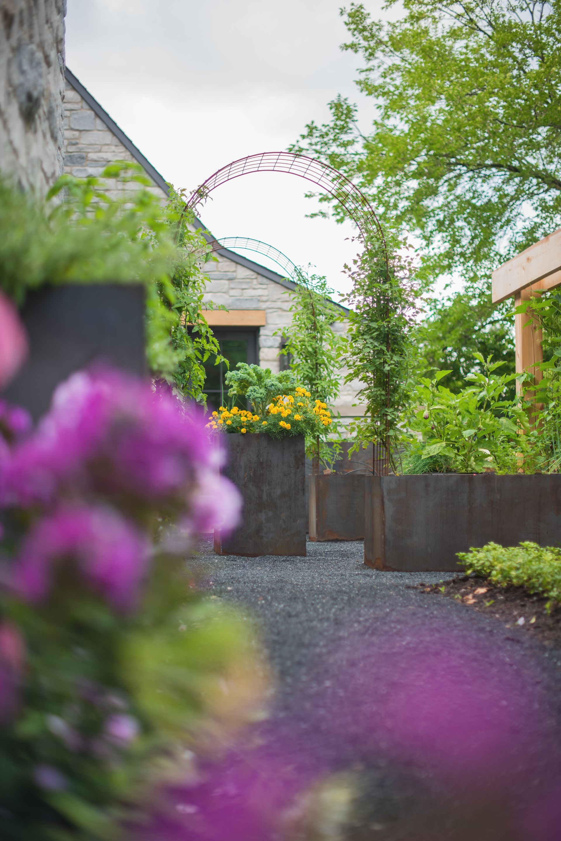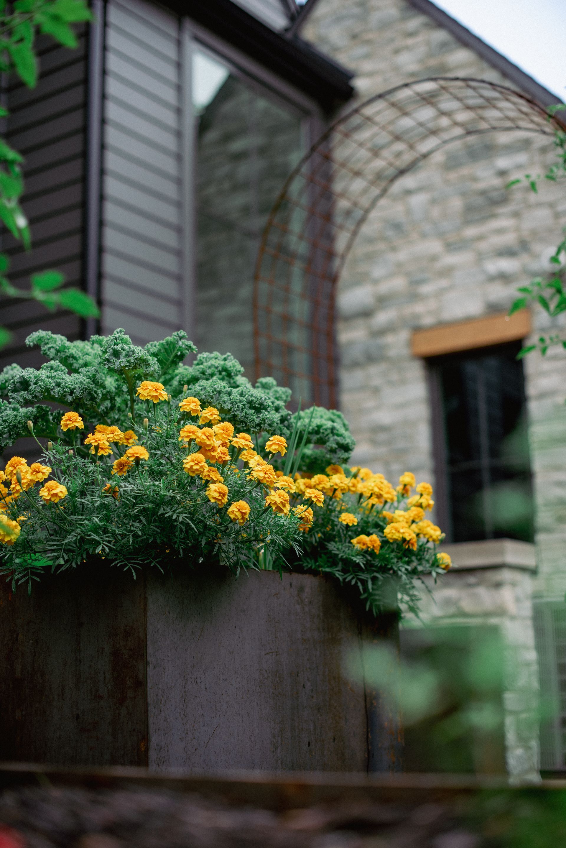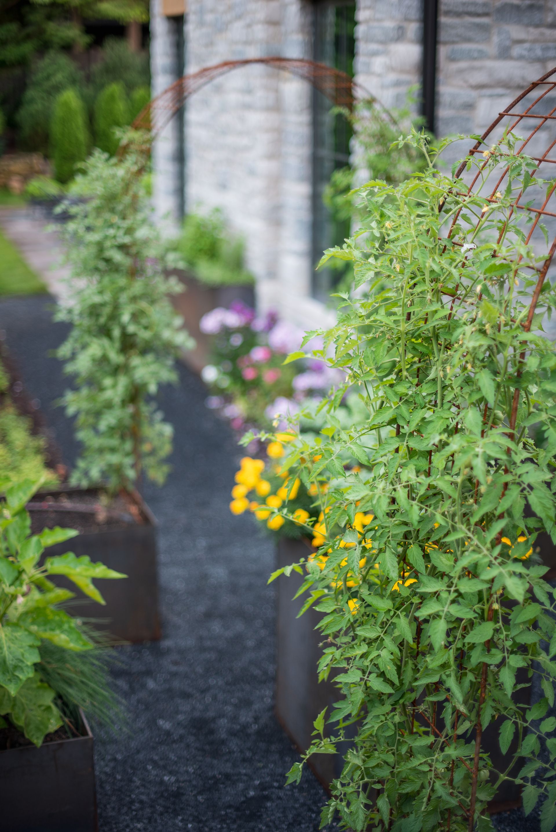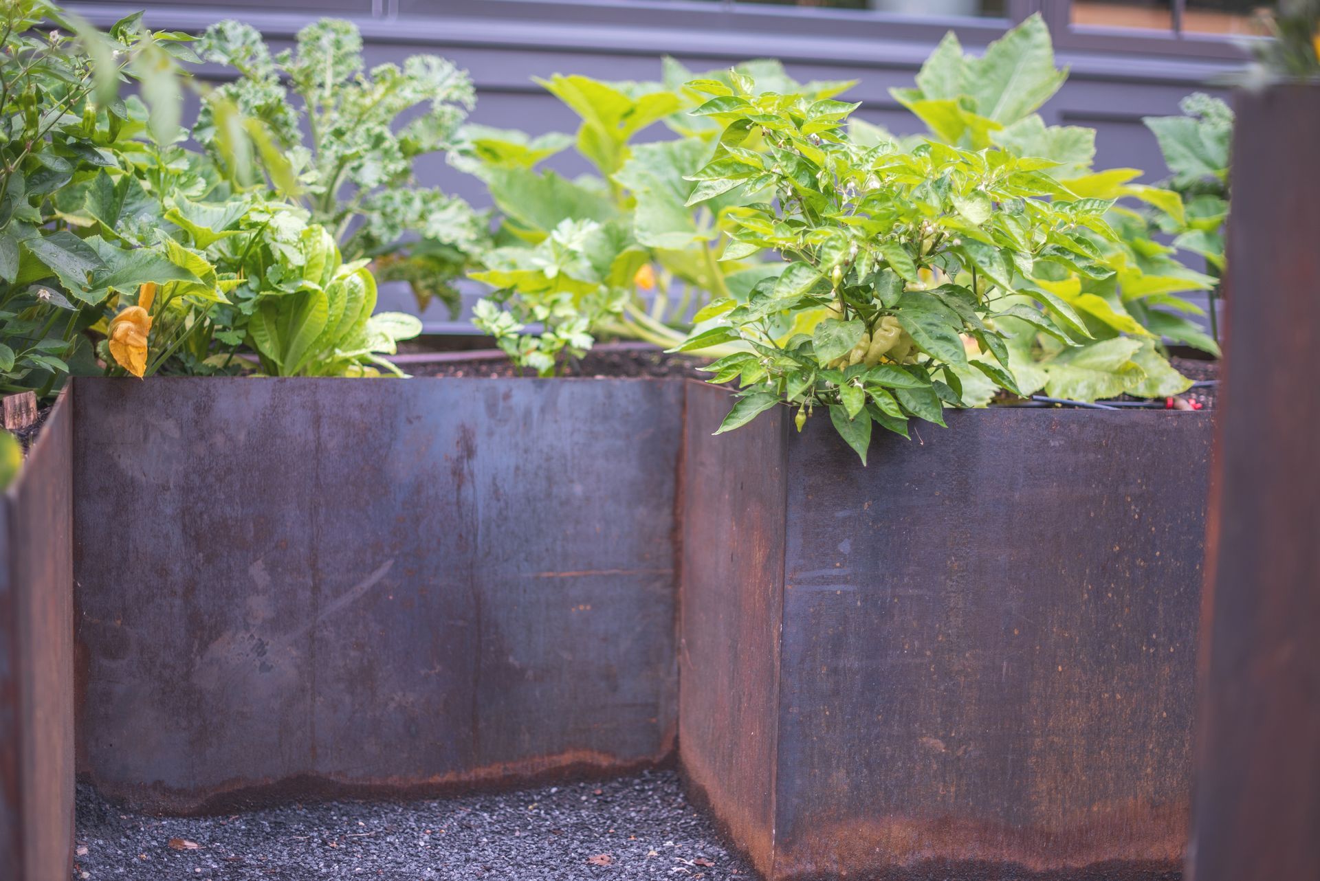 The homeowners—both professional chefs—built a new home and dreamed of a functional garden where they could grow fresh ingredients for their culinary creations. The builders had installed three basic garden beds, but they were too close together, too low to the ground, and offered no vertical growing space for vining plants. So, we started from scratch and installed a stunning steel garden that maximizes every inch of space, adds much-needed height and structure, and seamlessly flows into the rest of their outdoor living areas. The result is a highly productive, visually-striking designer garden that truly supports the way they cook and live!