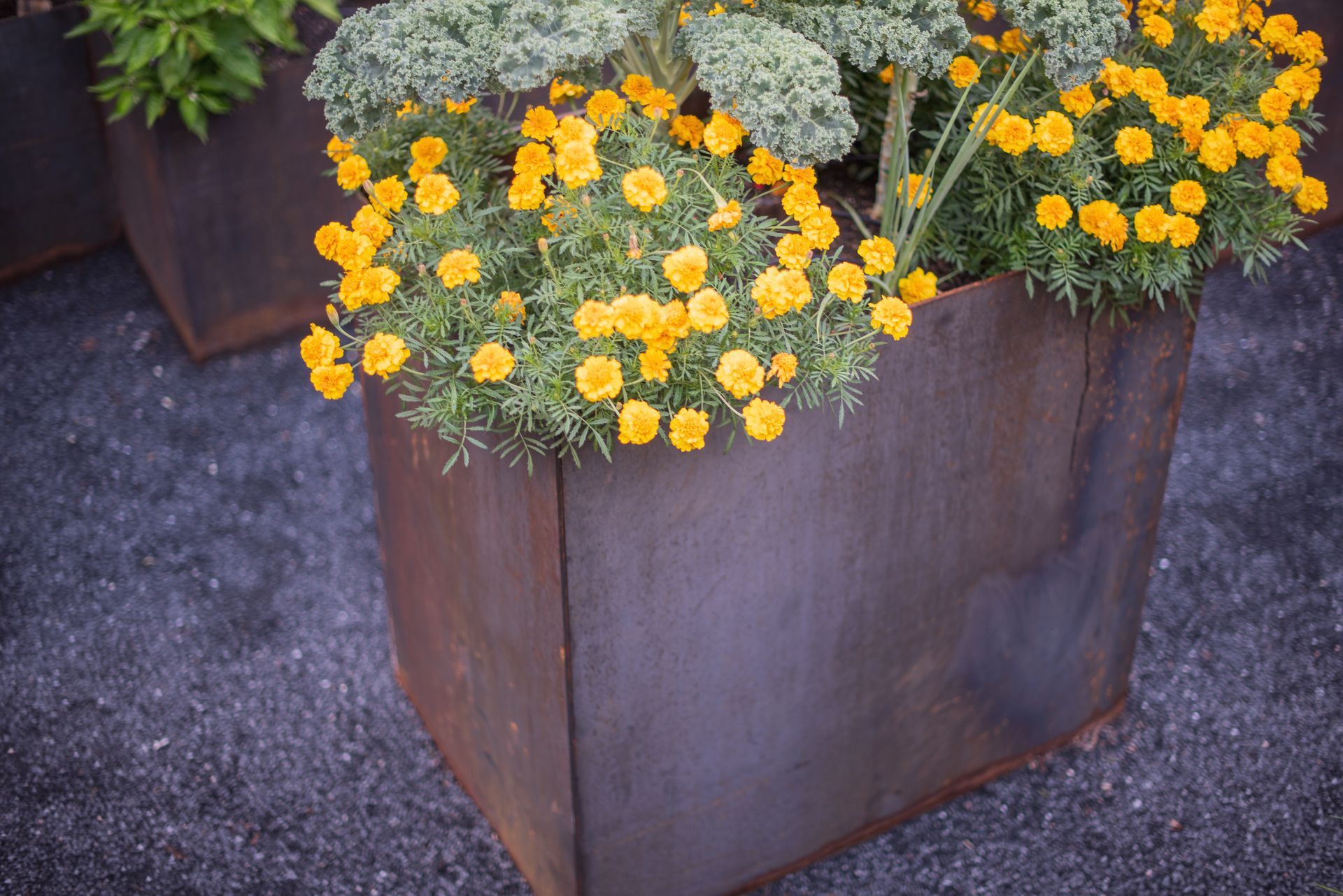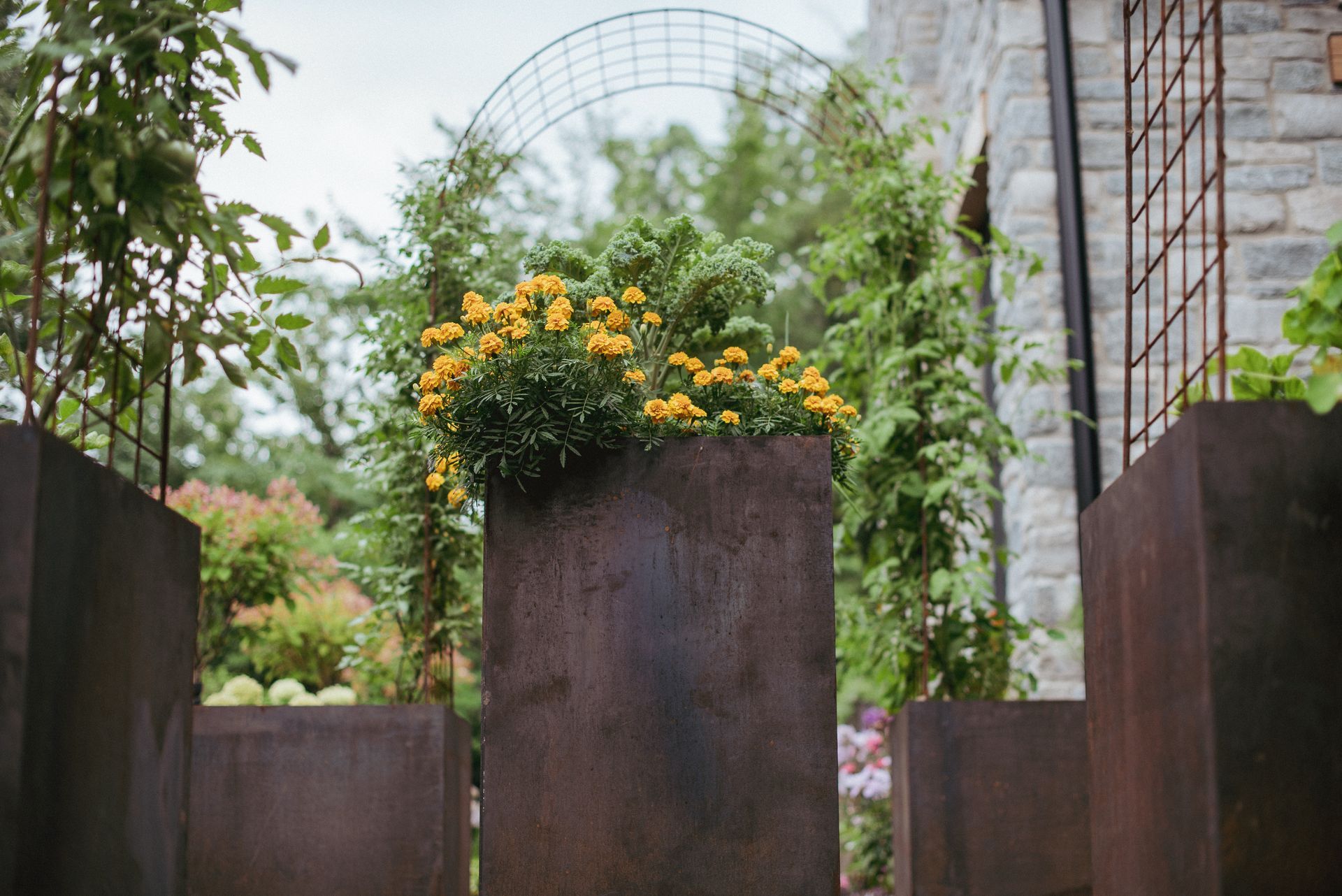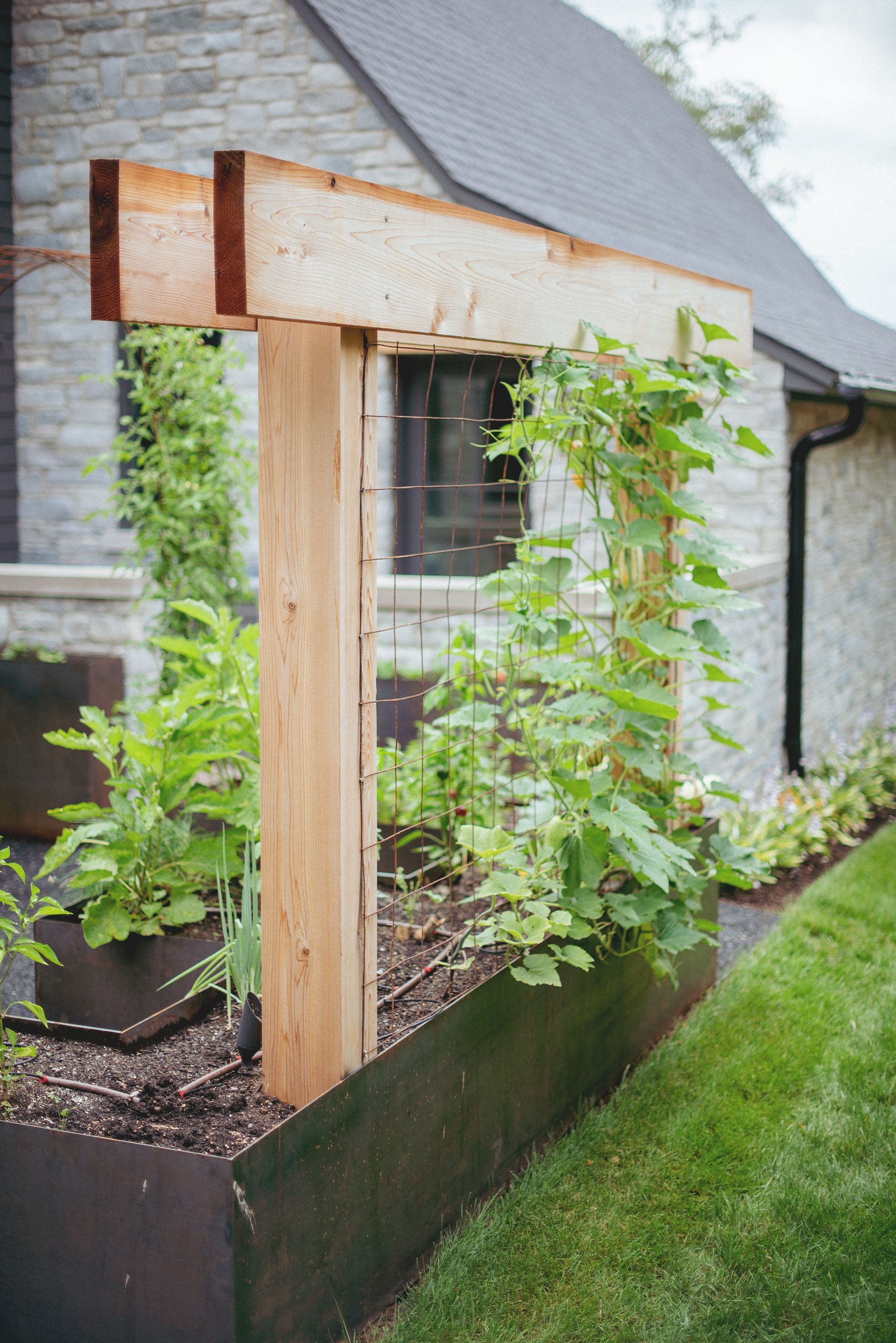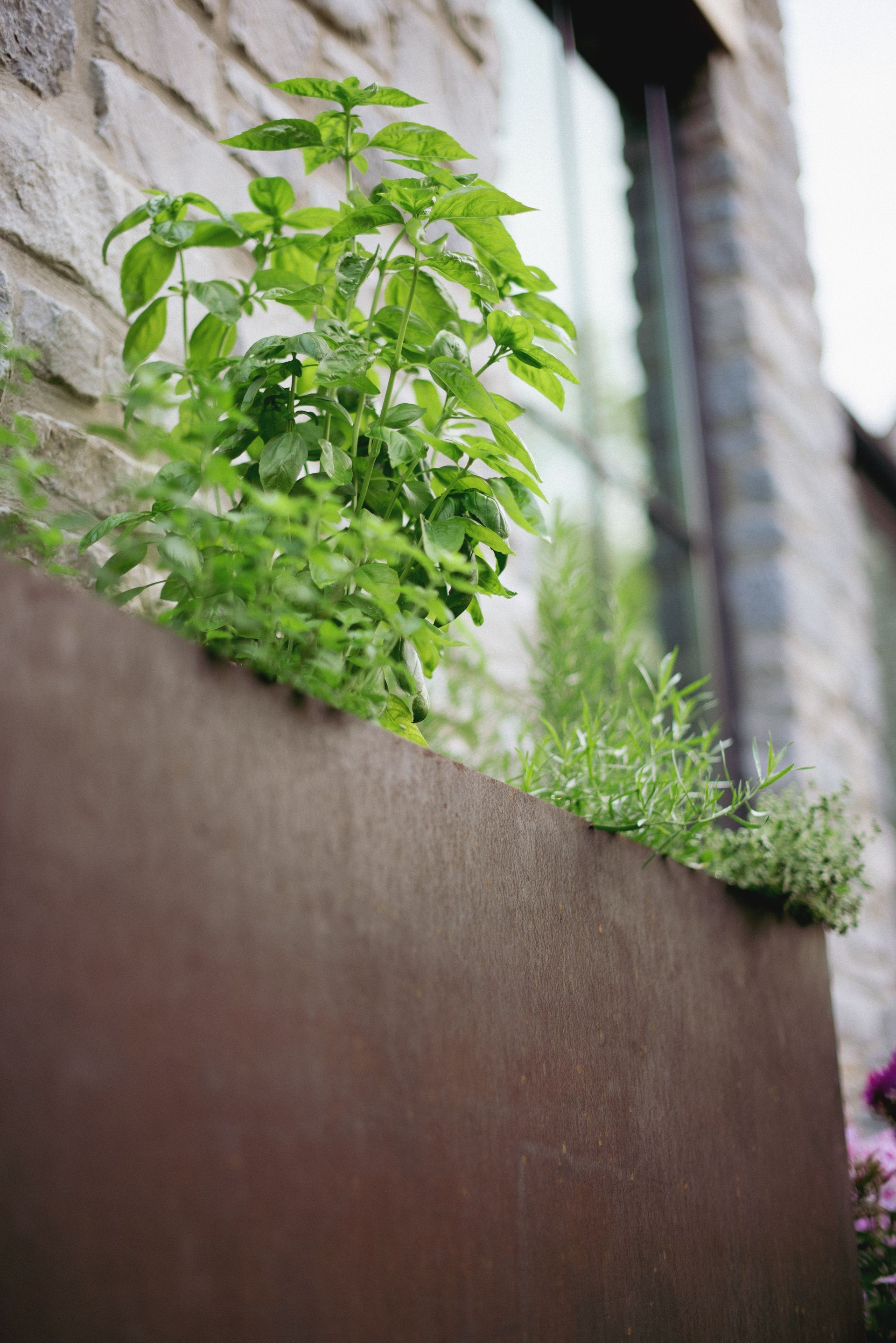 The homeowners—both professional chefs—built a new home and dreamed of a functional garden where they could grow fresh ingredients for their culinary creations. The builders had installed three basic garden beds, but they were too close together, too low to the ground, and offered no vertical growing space for vining plants. So, we started from scratch and installed a stunning steel garden that maximizes every inch of space, adds much-needed height and structure, and seamlessly flows into the rest of their outdoor living areas. The result is a highly productive, visually-striking designer garden that truly supports the way they cook and live!