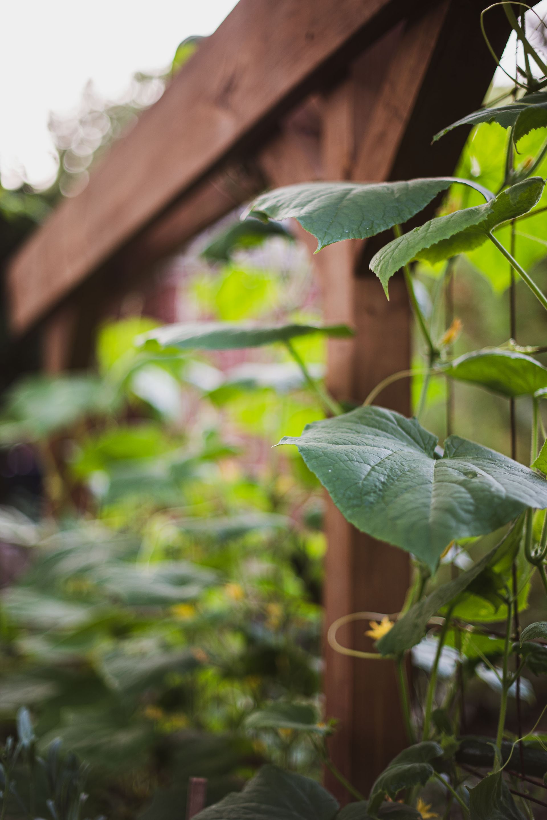 We transformed an unused corner of their lot into a unique and functional 3-tiered terraced garden to mimic the grade of the land. The back of this "E-shaped" box features a trellis that provides a beautiful backdrop of climbing cucumber vines.