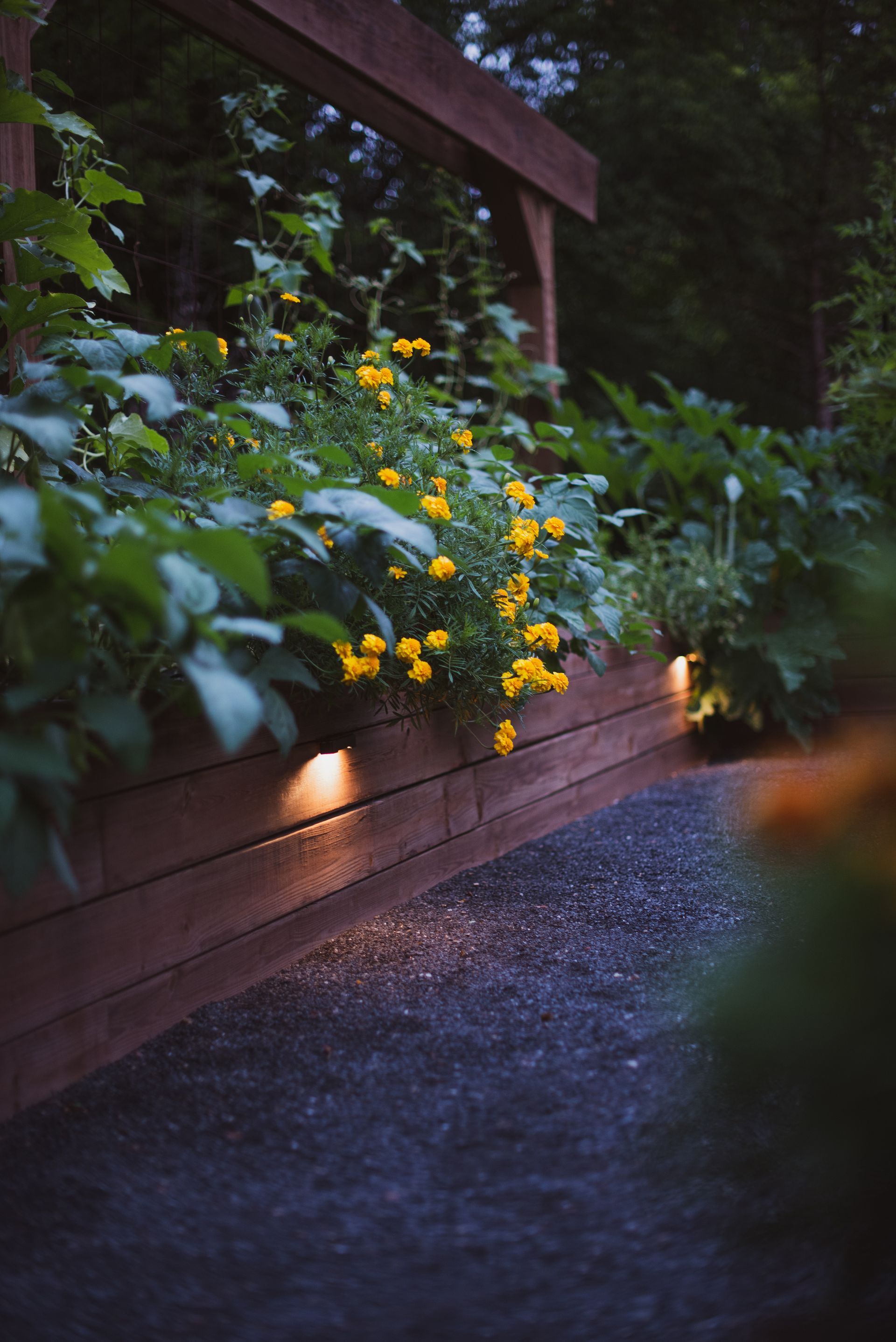 - pathway lighting & spotlights on trellis posts