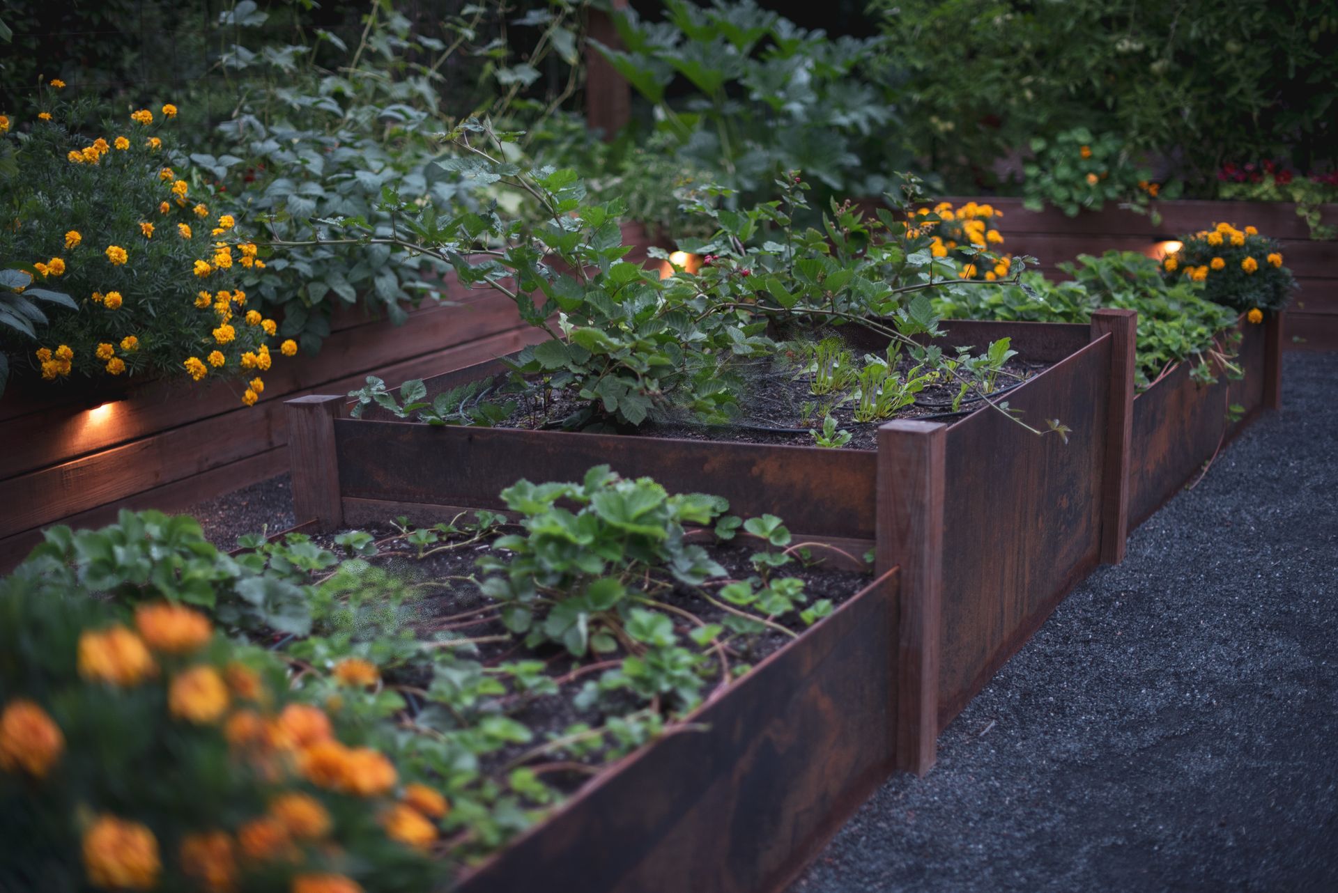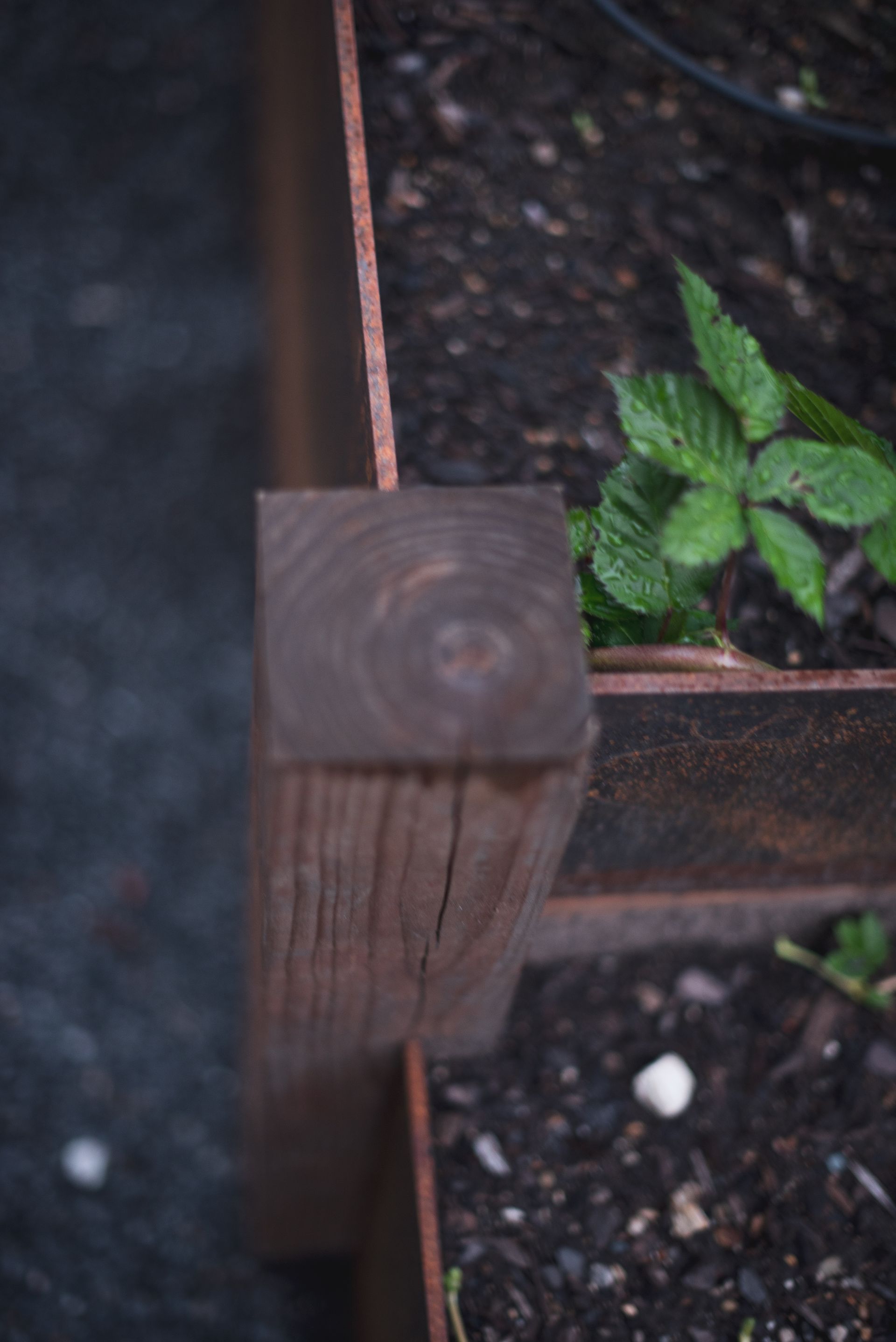 - 2' tall cedartone & corten steel boxes